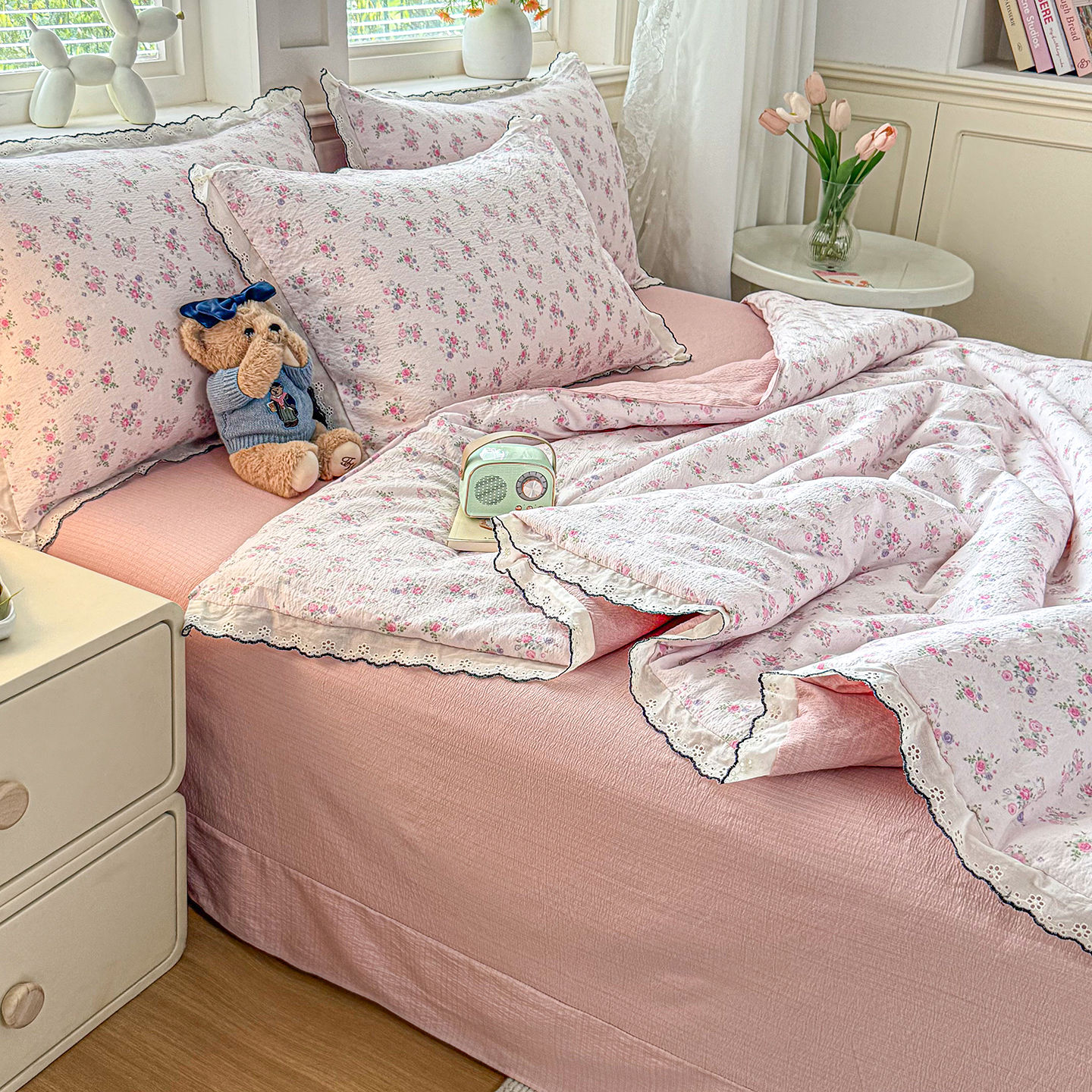 (总)梦纤绒 2026新款法式全棉花边夏被夏凉被空调被四件套,星织甜梦,豆蔻,蔷薇花,半岛玫瑰,粉黛,红樱桃,花间语,米朵,莫奈花园,奶狗乐园,浅夏,花园兔,童趣梦,星星人