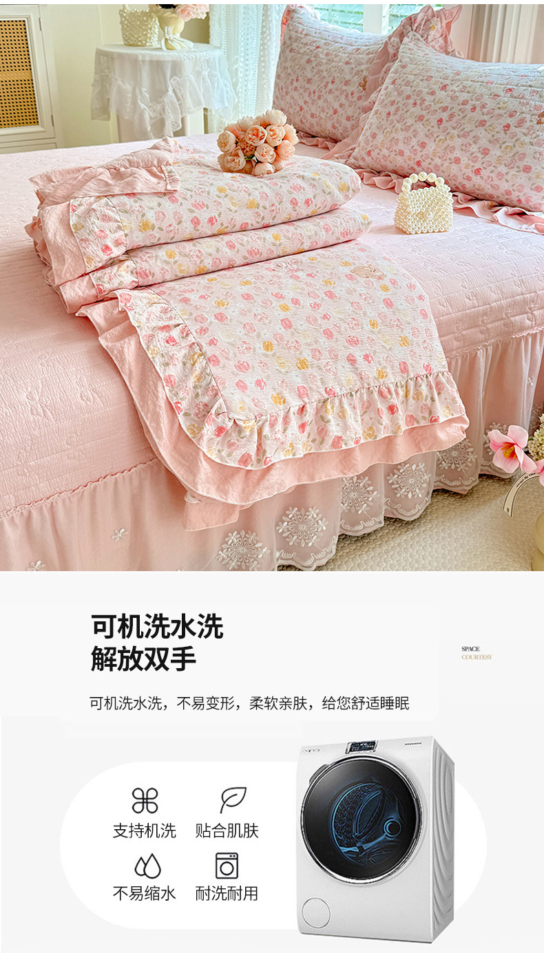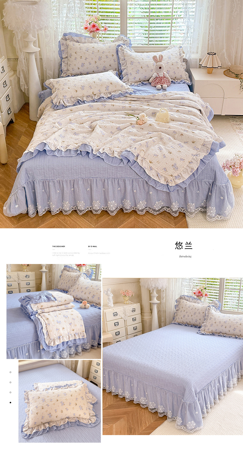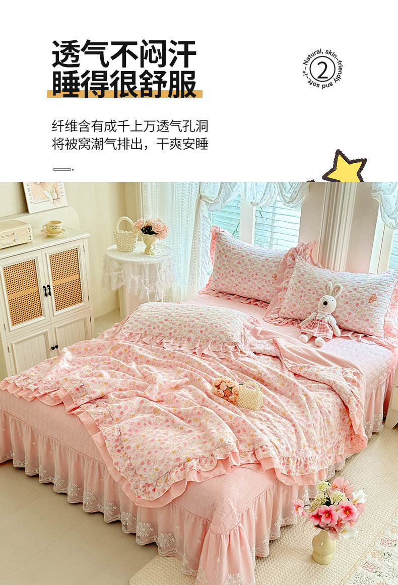 商品名称:(总)苏米娜 2026韩版双层花边木棉皱皱纱夏被床盖款-小清新系列