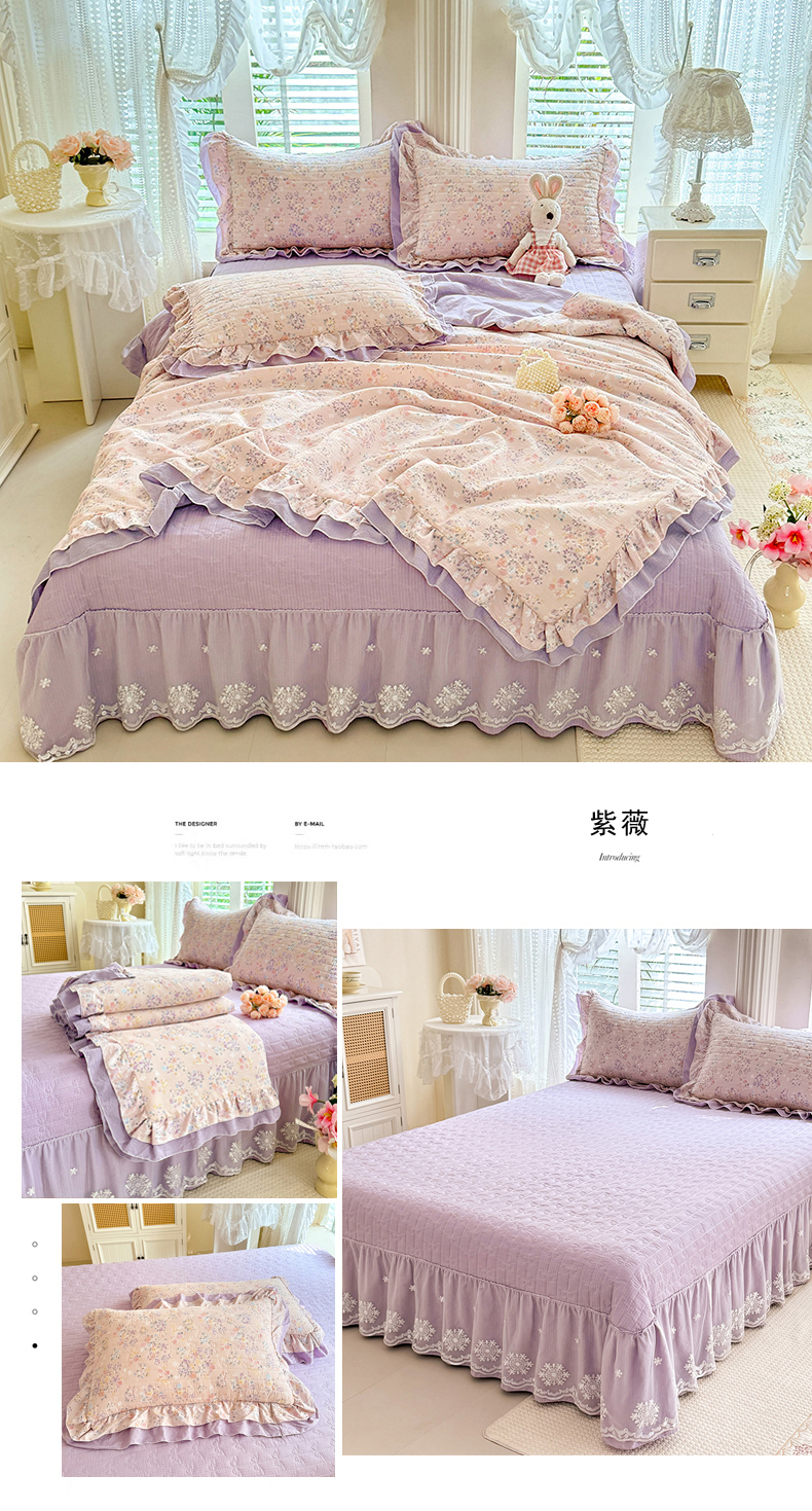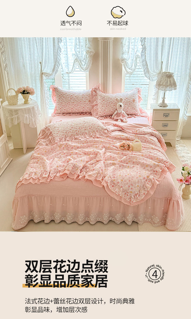 苏米娜2026春夏新品韩版公主风超柔水洗棉床盖四件套刺绣针织棉双层纱纯棉棉麻全棉公主风床盖款四件套,芬迪-香雪粉, 芬迪-可可灰 ,芬迪-松露咖 ,芬迪-星云紫