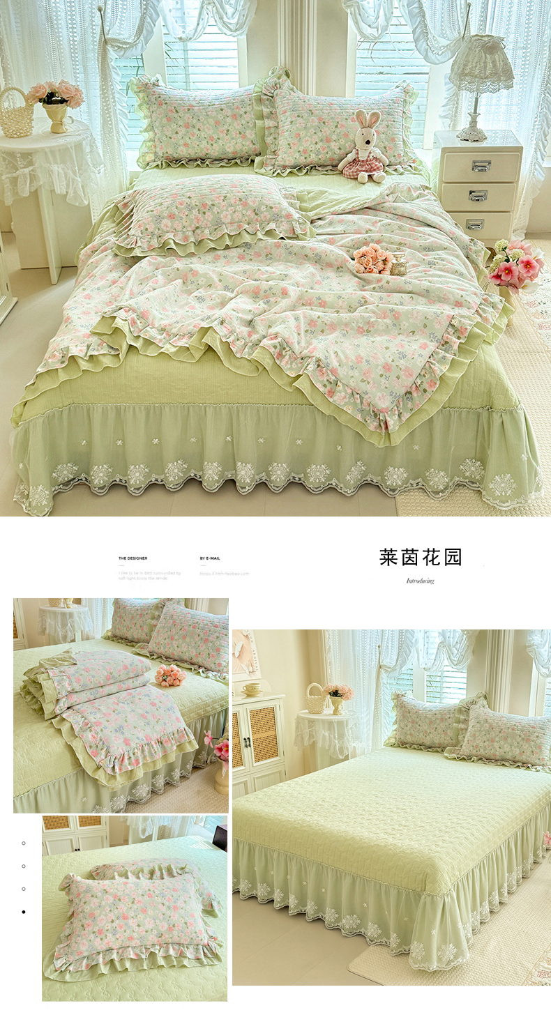(总)苏米娜家纺2026春夏新款活性印花ins风小碎花软糯水洗棉床盖款四件套全棉纯棉花边款被套,春田绿 ,紫韵,兰黛 , 奶酪芝士 ,莫奈-粉