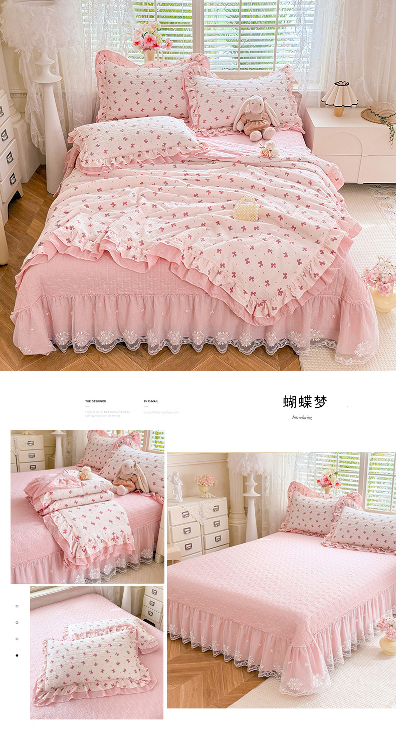 苏米娜家纺2026春夏新品韩版甜美公主风超柔水洗棉床盖四件套刺绣针织棉双层纱纯棉棉麻全棉少女心夹棉床裙款夏被款床盖四件套,幻蝶-梦幻紫 ,幻蝶—奶油白 ,幻蝶-嫩黄, 幻蝶-嫩芽绿 ,幻蝶-婴儿蓝, 幻蝶-樱花粉