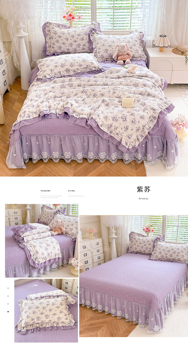 (总)(总)苏米娜 2026韩版双层花边木棉皱皱纱夏被床盖款-小清新系列,清新花语 ,紫薇, 半夏, 蝴蝶梦 ,花涧拾梦 ,莱茵河畔 ,悠兰 ,紫苏