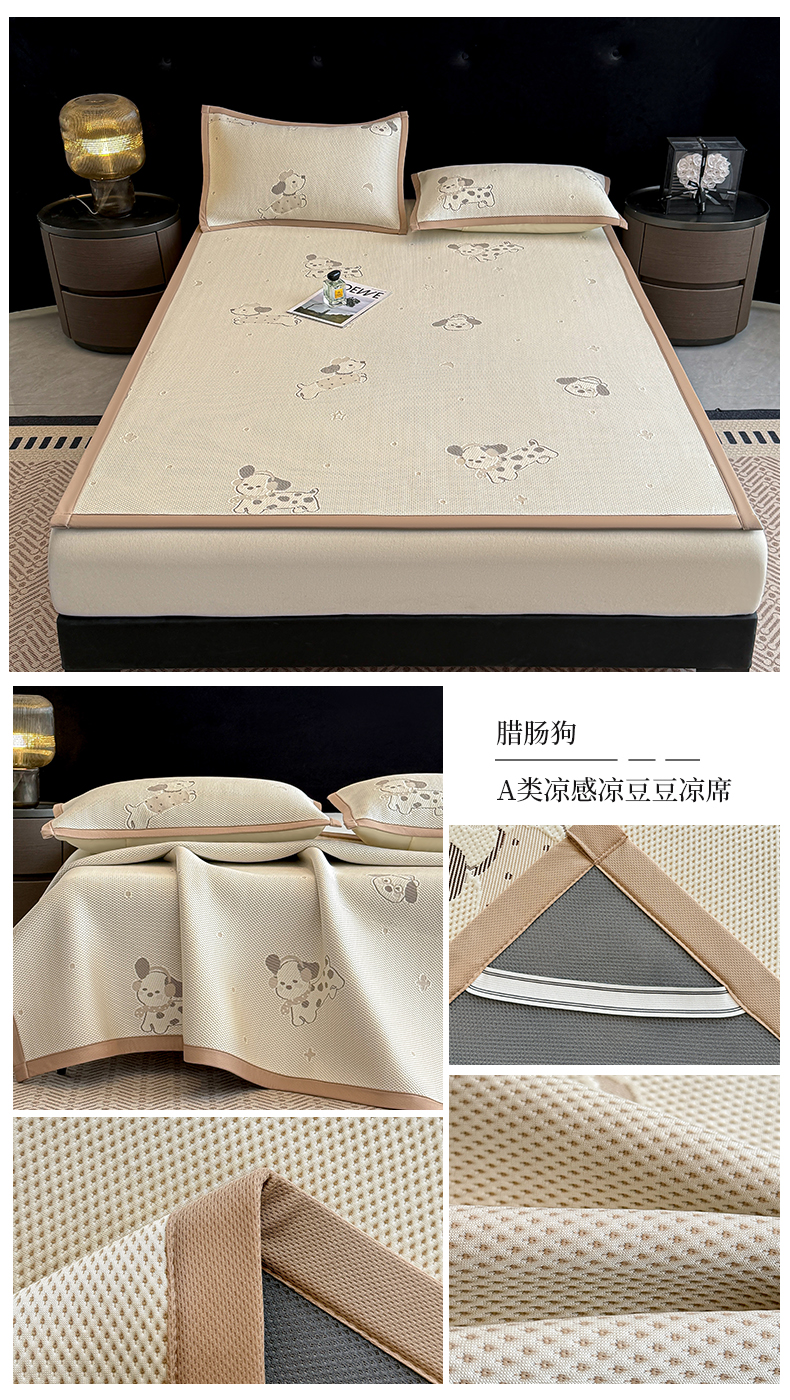 (总)畅畅家纺 2026春夏新款复合中分子PE100%聚乙烯乙纶色织提花凉感软凉席席子,繁花,草莓甜心,腊肠狗,清花,四叶草-粉,四叶草-灰,叶语,樱桃