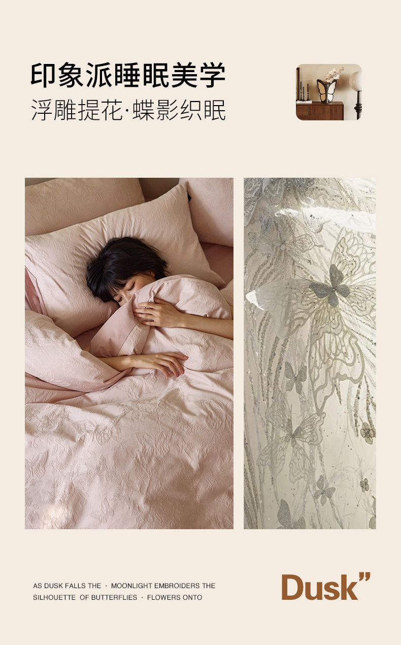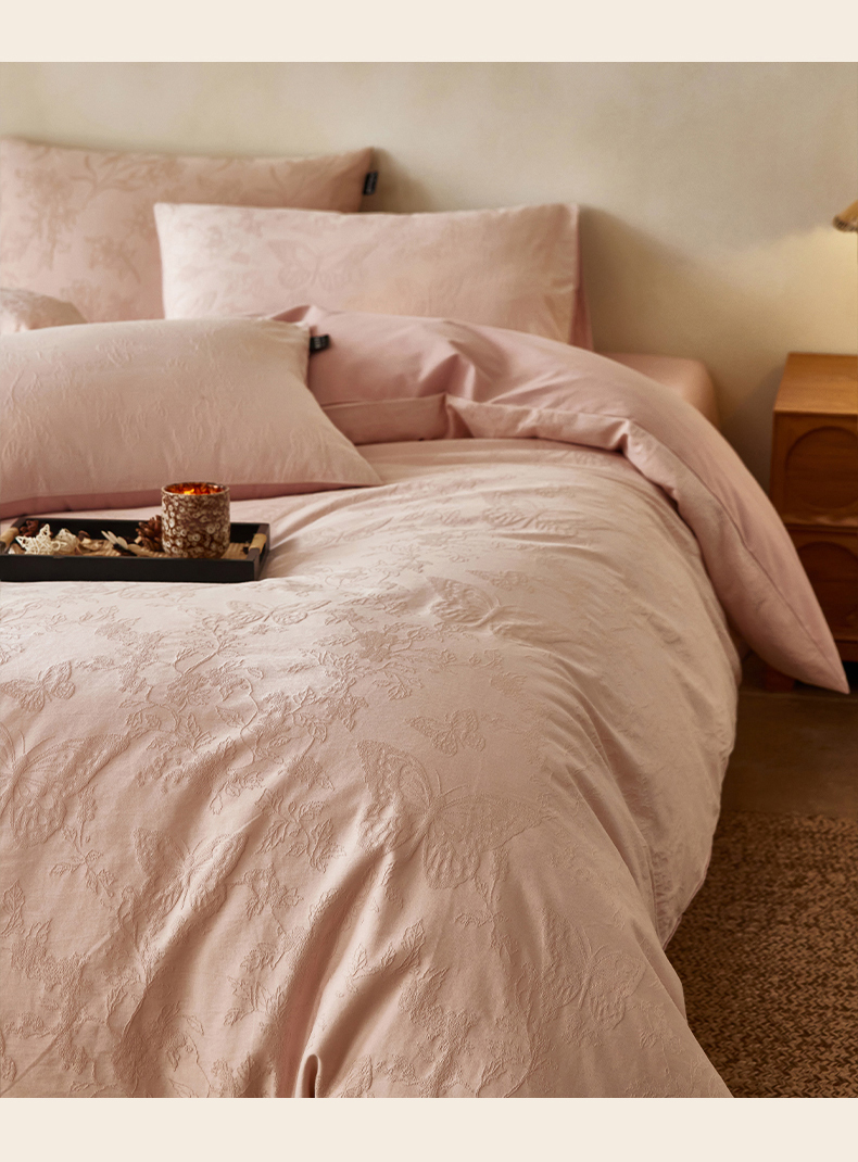 当前位置: 91家纺网 > 商品网购 > 床品套件 > 四件套 > 全棉普通四件套 > 沐珩家纺 2026新款全棉提花四件套-翩然梦蝶系列 栩然-纱语