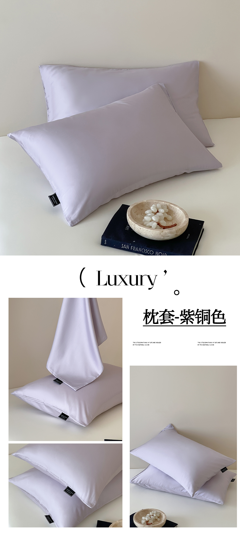 (总)三味舒屋 2026新款凉风小奢绸60S兰精天丝纯色单品系列-单枕套枕套单件,极光蓝,斯卡其粉,象牙白,雅灰,烟灰色,珍珠白,紫铜色,组合图仅供展示-不可下单