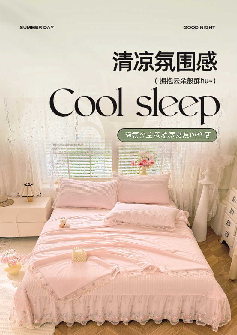 商品名称:(总)苏米娜家纺SUMINA 2026新款A类锦氨凉感公主风夏被凉席四件套