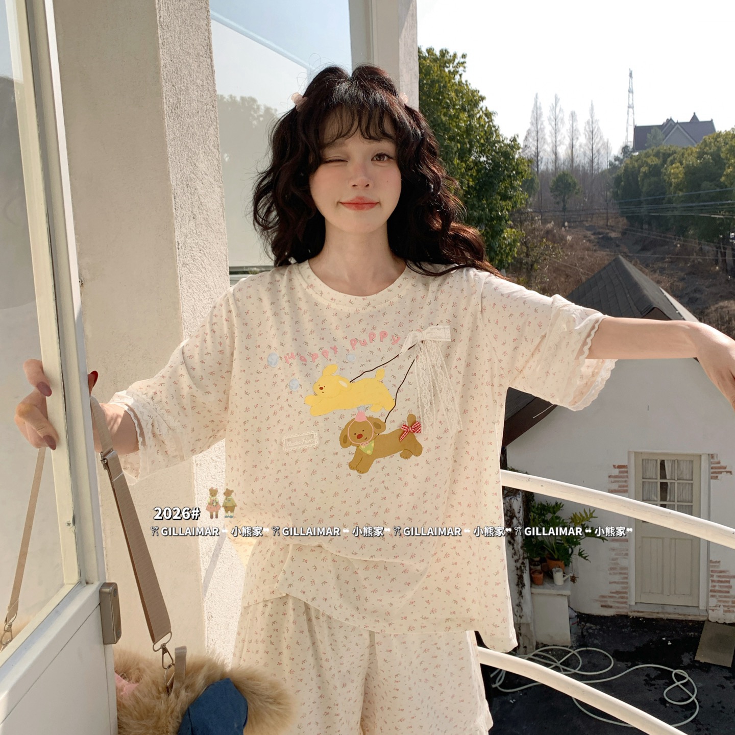 (总)妍景家居生活馆 2026新款竖条小奶狗家居服,竖条小奶狗