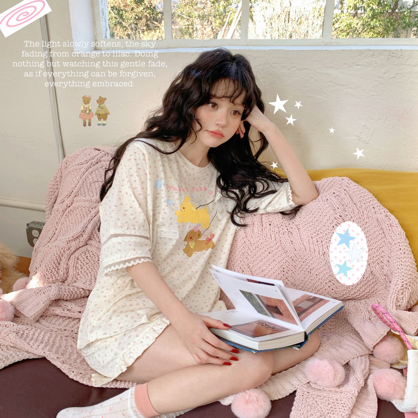 商品名称:妍景家居生活馆 2026新款莱赛尔冰丝棉小熊家-短裤散步吧家居服 短裤散步吧-深灰