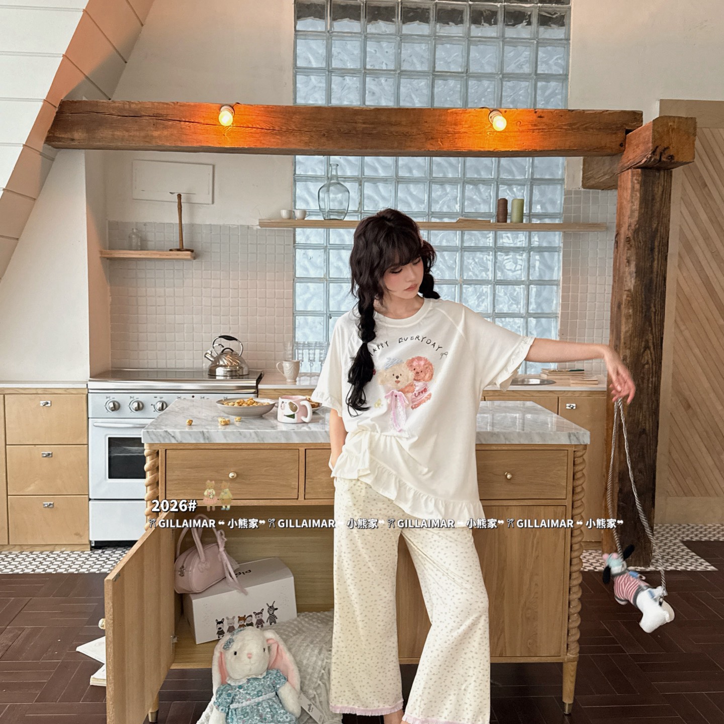 (总)妍景家居生活馆 2026新款竖条小奶狗家居服,竖条小奶狗
