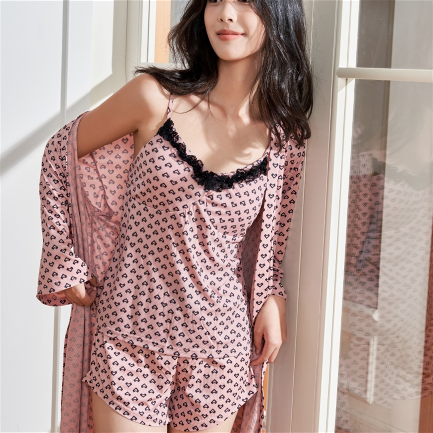 当前位置: 91家纺网 > 商品网购 > 居家日用 > 睡衣/家居服套装 > (总)妍景家居生活馆 2026新款冰丝三件套满印爱心粉家居服