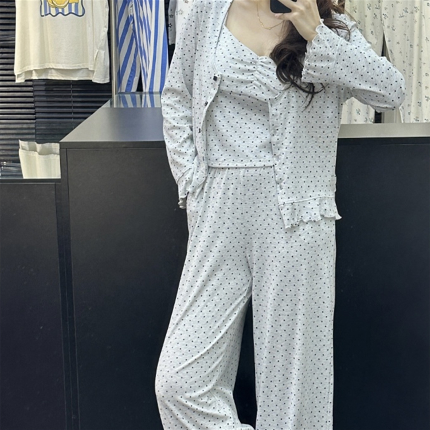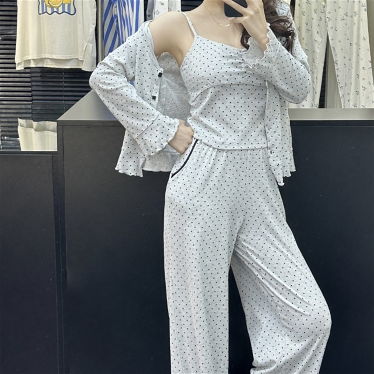 当前位置: 91家纺网 > 商品网购 > 居家日用 > 睡衣/家居服套装 > (总)妍景家居生活馆 2026新款经典三件套波点家居服