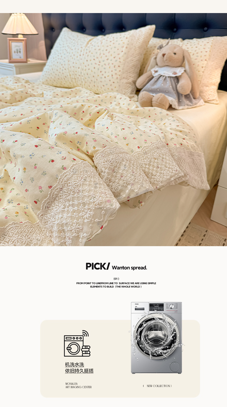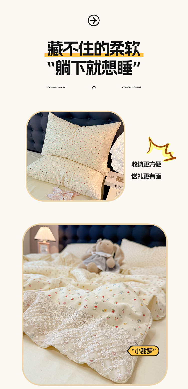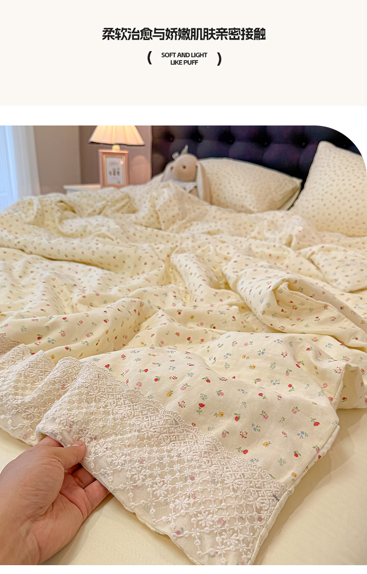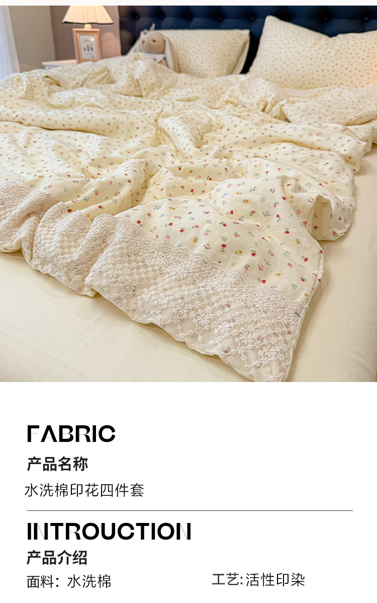 当前位置: 91家纺网 > 商品网购 > 床品套件 > 四件套 > 水洗棉四件套 > 盼季家纺 2026新款水洗棉印花法式高定小碎花蕾丝花边四件套 法式高定花边-颜昔