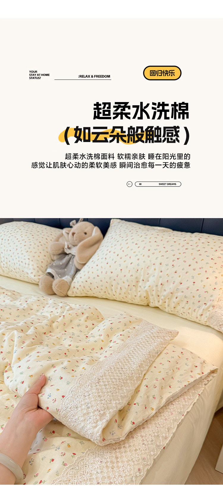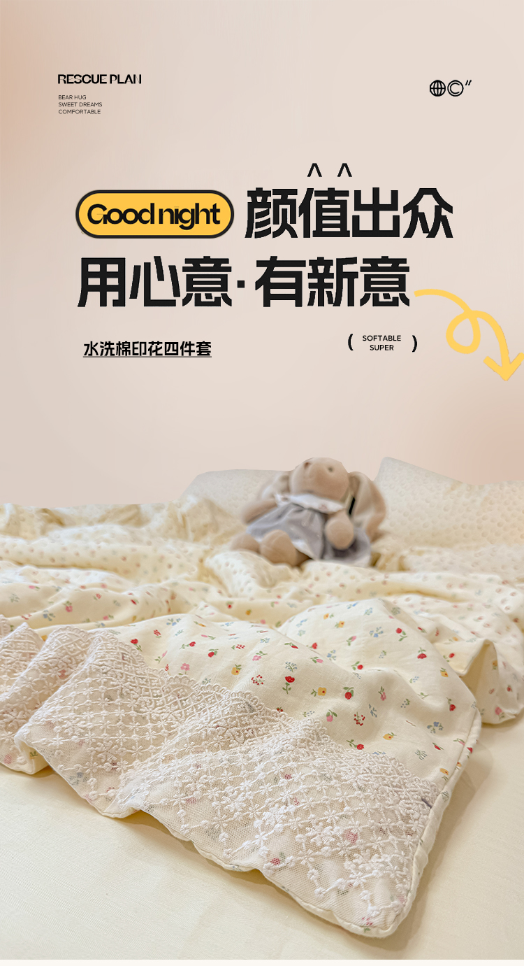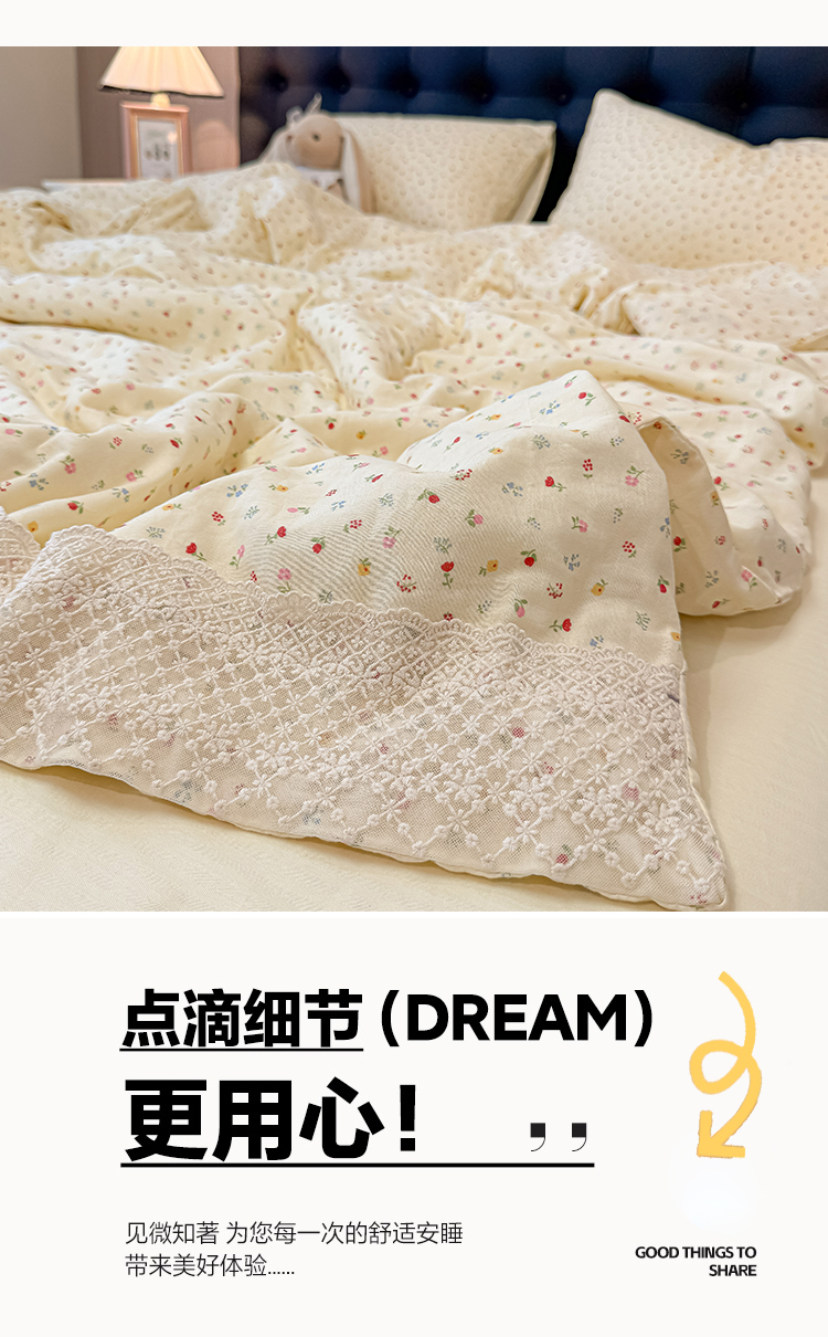 当前位置: 91家纺网 > 商品网购 > 床品套件 > 四件套 > 水洗棉四件套 > 盼季家纺 2026新款水洗棉印花法式高定小碎花蕾丝花边四件套 法式高定花边-颜昔