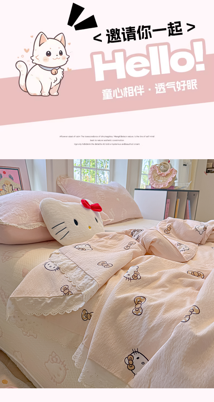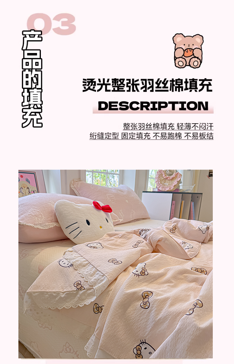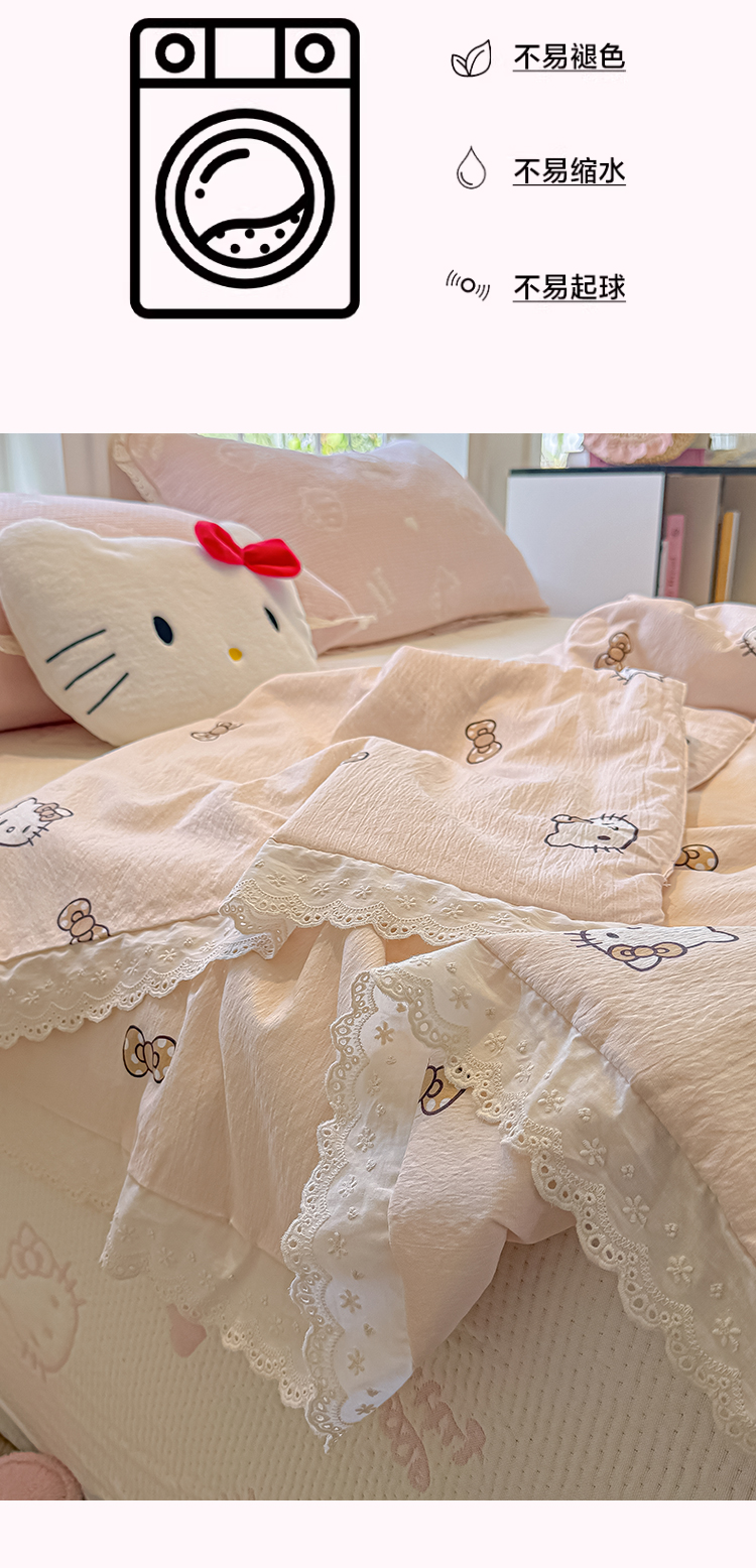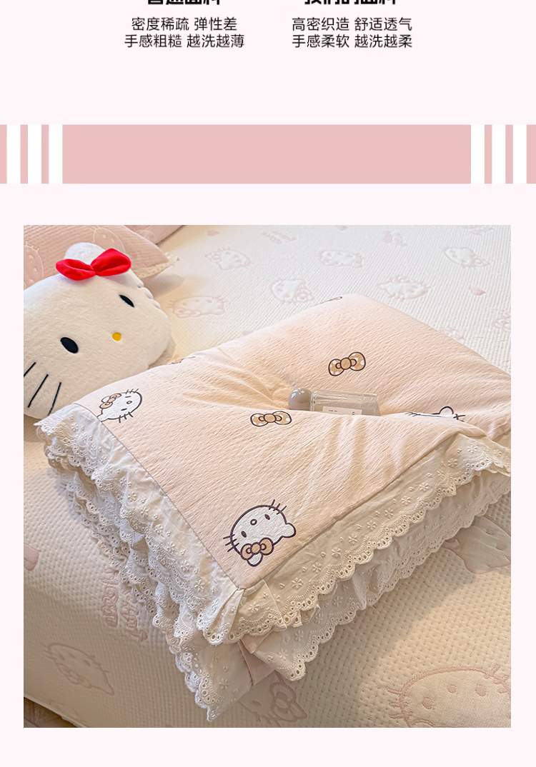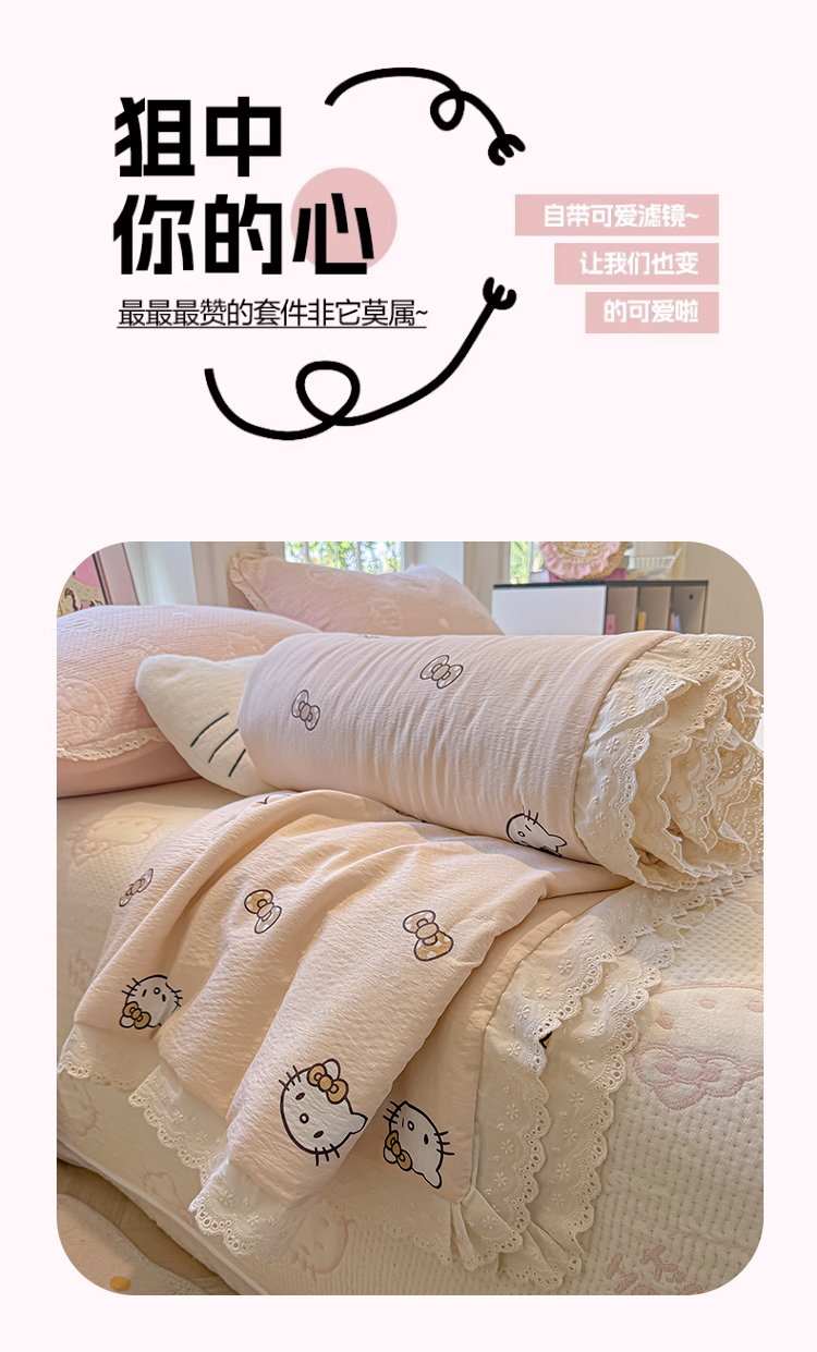 • 91家纺网 家纺一手货源 找家纺 盼季家纺 2026新款A类木棉皱皱纱床盖夏被四件套场景二-奶盖KT 奶盖KT-粉白
