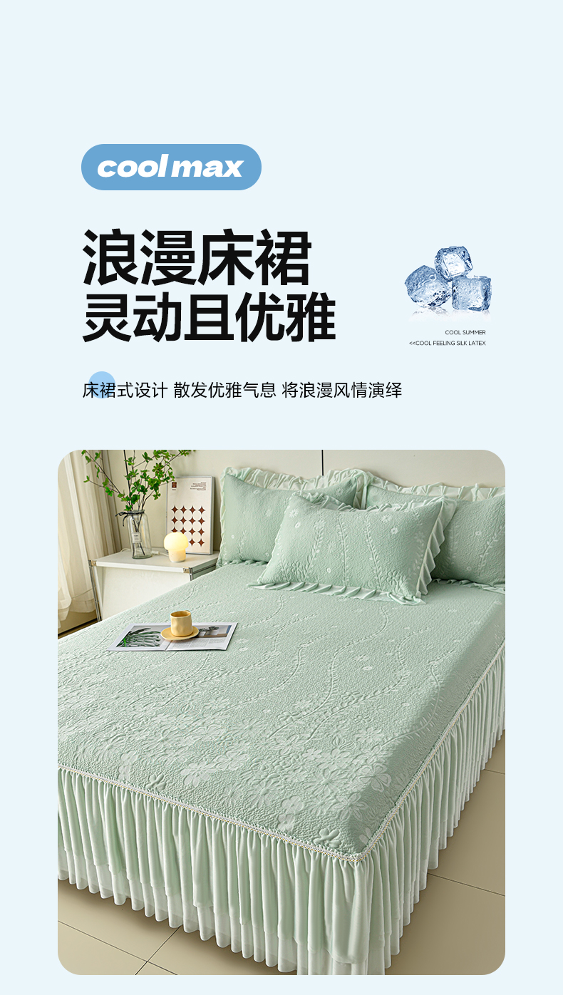 (总)畅畅家纺 2026新款聚乙烯中分子凉感冰感凉豆豆凉席席子床裙三件套-欧式伴夏,伴夏-粉,伴夏-灰,伴夏-蓝,伴夏-绿,欧式-粉,欧式-灰,欧式-蓝,欧式-绿,幸运草-粉,幸运草-灰,幸运草-蓝,幸运草-绿