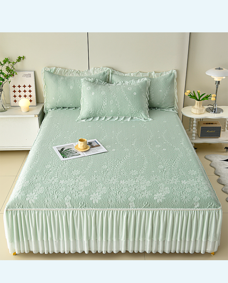 畅畅家纺 2026春夏新款夏季3D立体冰豆豆凉席席子床裙三件套 花香怡人-绿