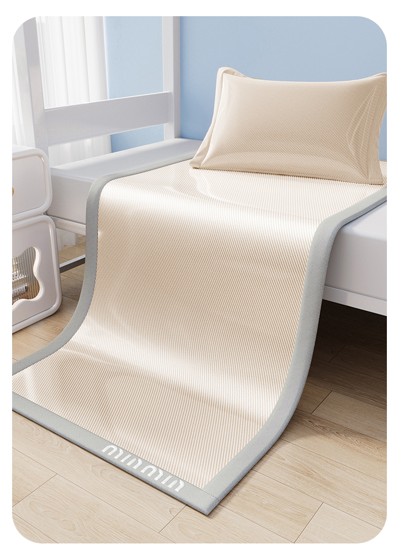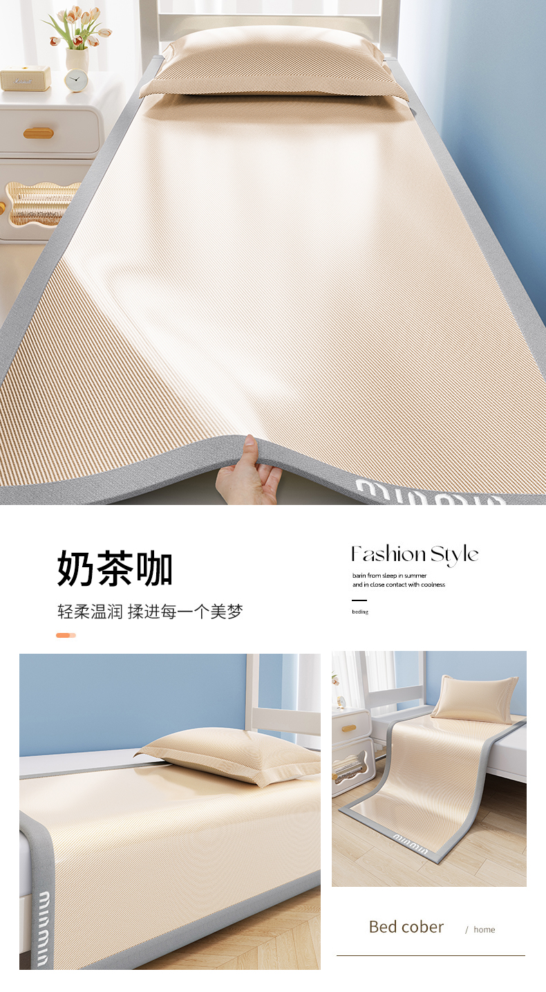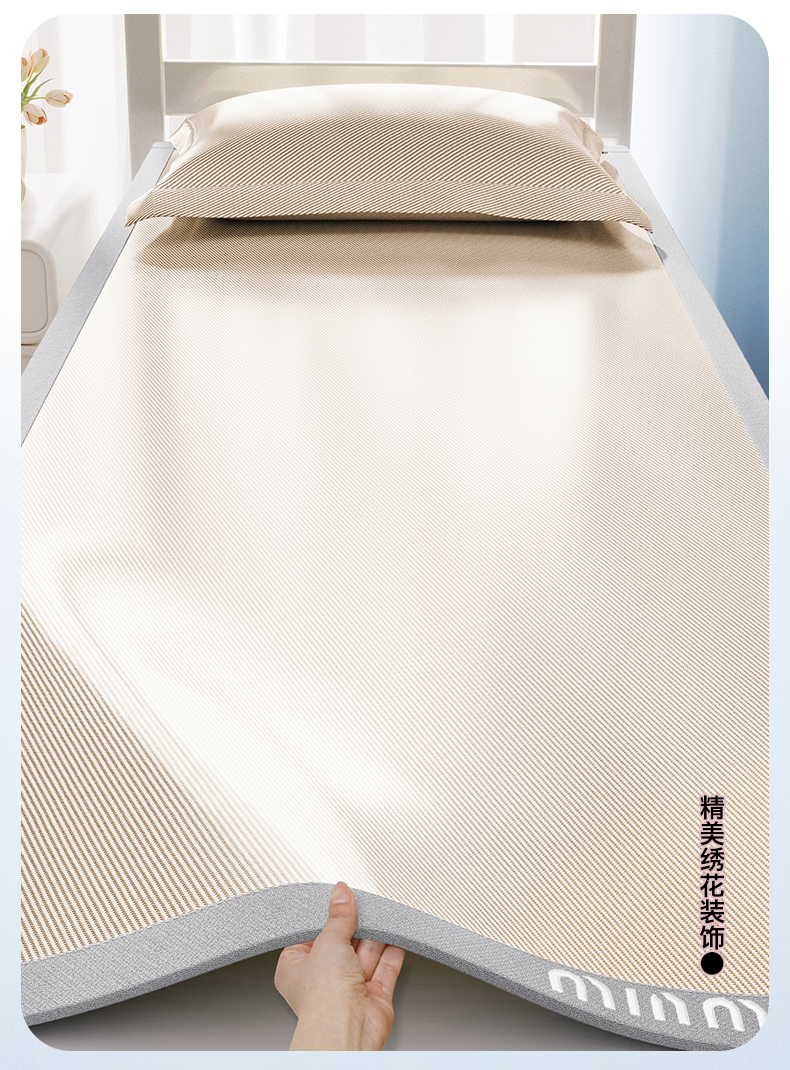 商品名称:女子家纺 2026新款学生床斜纹冰丝刺绣款凉席席子凉席 杏仁咖