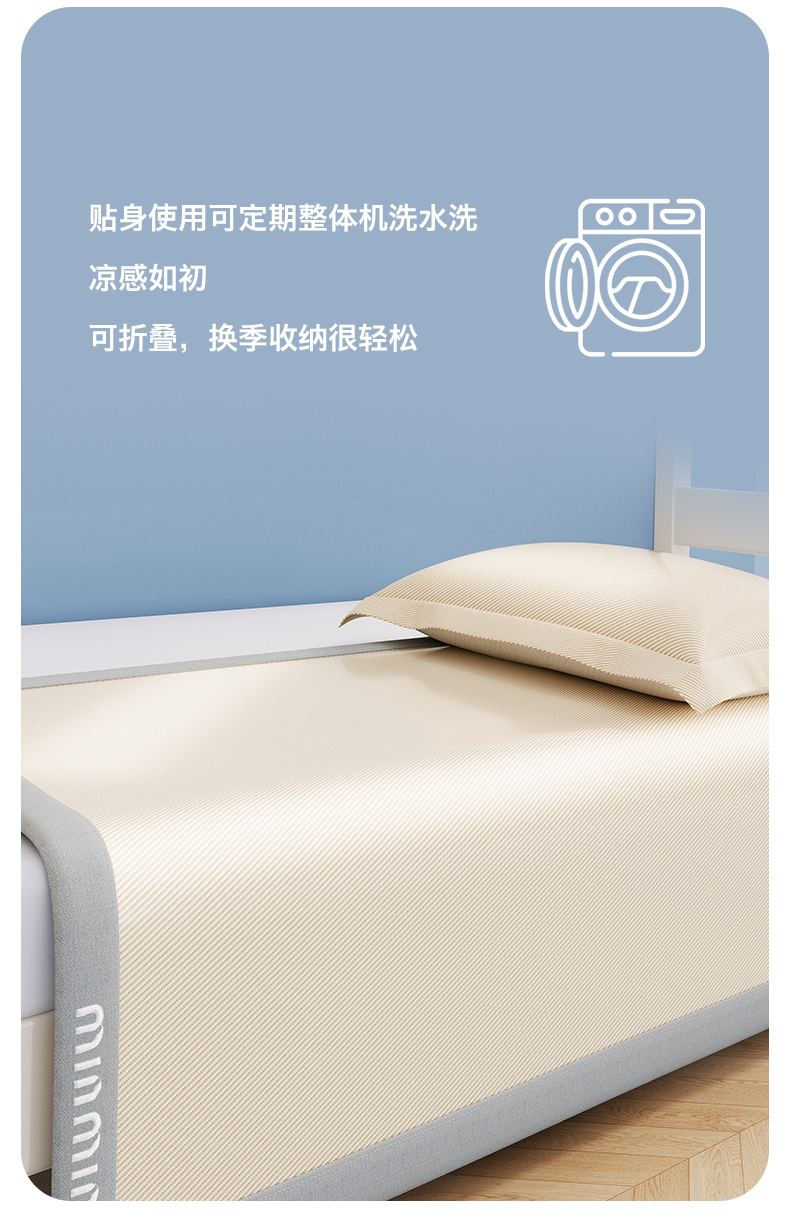 (总)女子家纺 2026新款学生床斜纹冰丝刺绣款凉席席子凉席,冰山蓝,凉茶绿,奶茶咖,宁静蓝,柠檬绿,杏仁咖,雪花灰,樱花粉