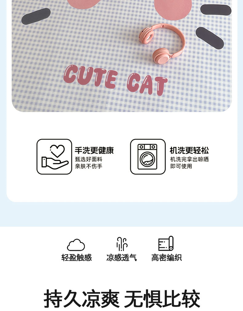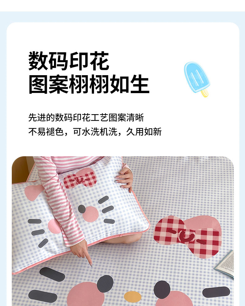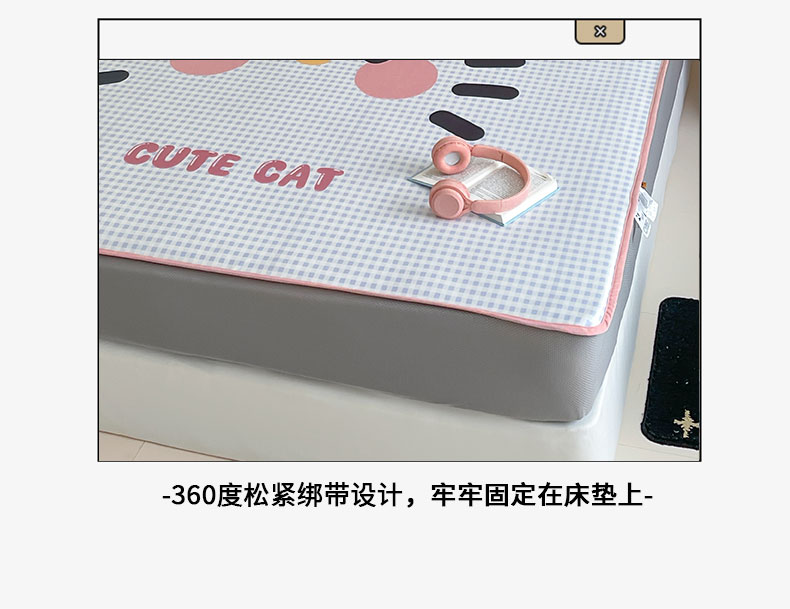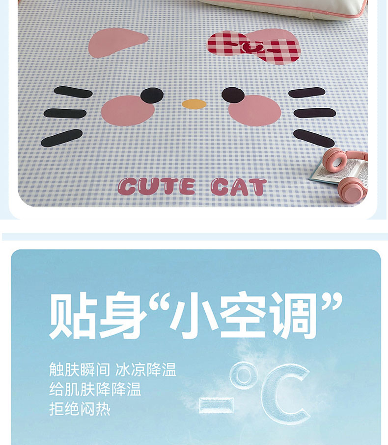 当前位置: 91家纺网 > 商品网购 > 床上用品 > 凉席 > 桃子家居 2026新款A类ins博主卡通数码印花高级品质撞色中分子1200D冰感丝凉感席冰丝三件套平铺床笠系列 冰感席混搭-可爱猫咪