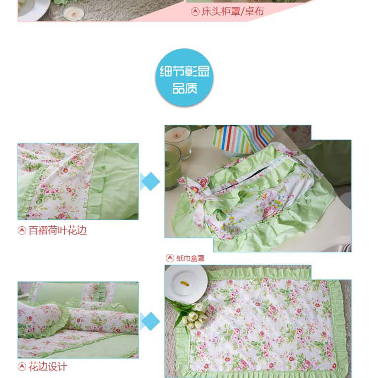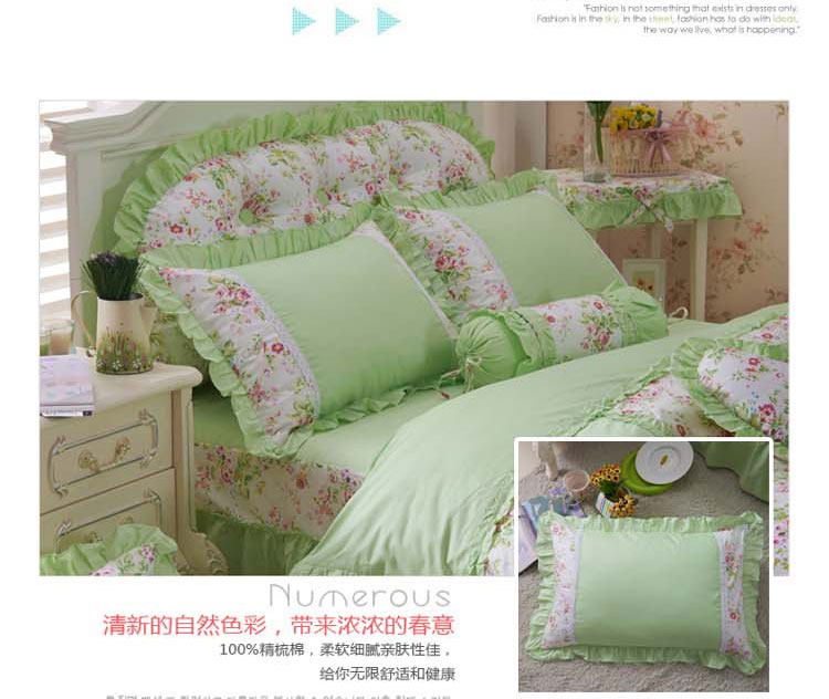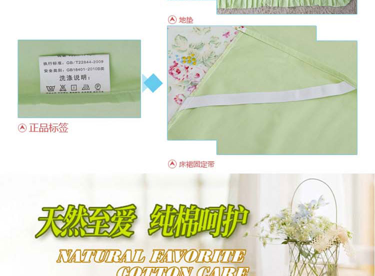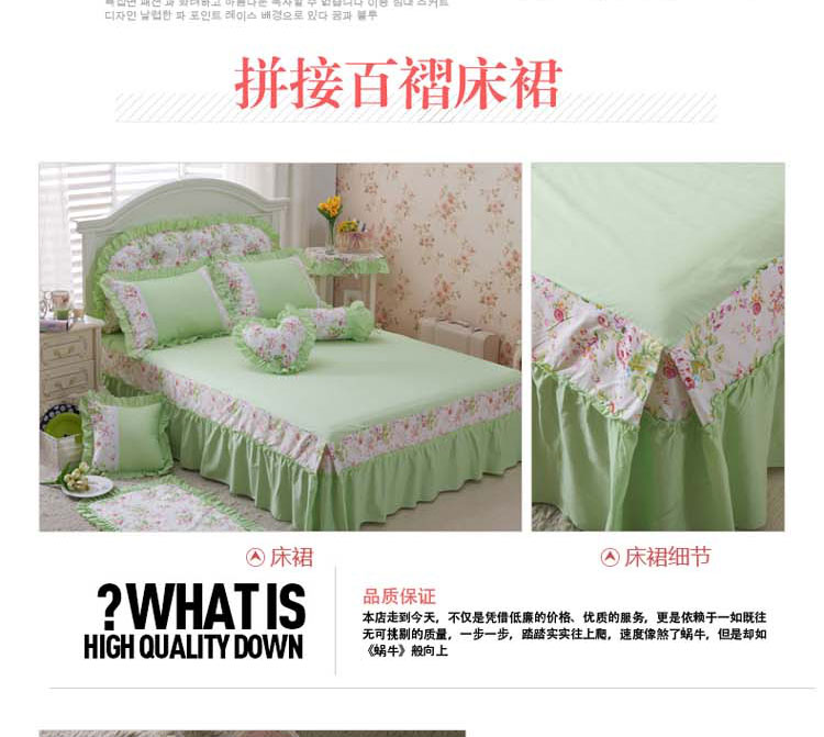 商品名称:菊尚家纺 全棉13372韩版蕾丝床裙四件套浓情绿意