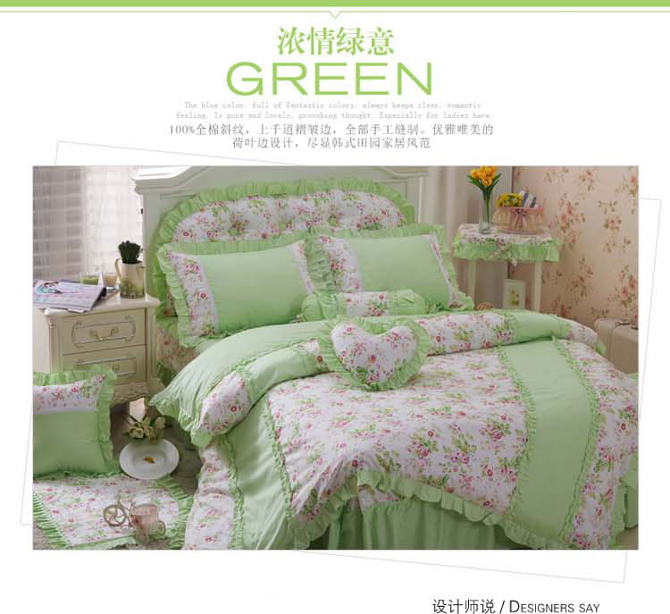 菊尚家纺 全棉13372韩版蕾丝床裙四件套浓情绿意