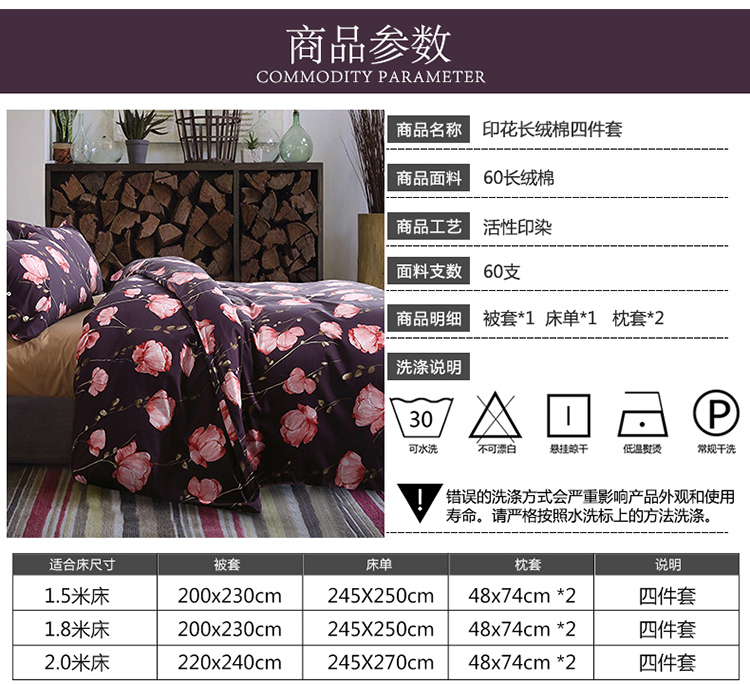 商品名称:太古汇家居 60长绒棉(印花)四件套 卡瑞达TGH027