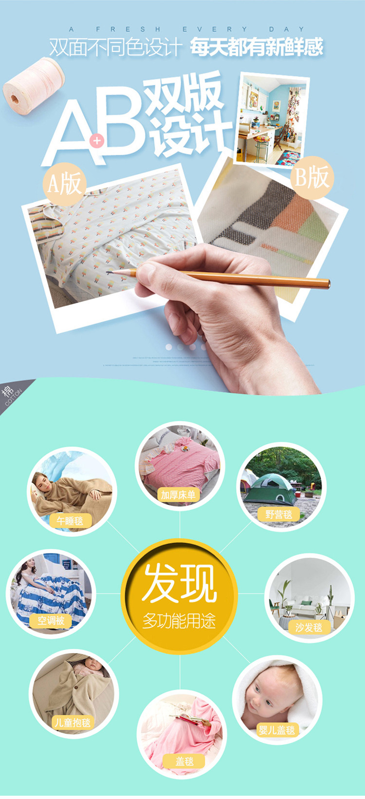 朴尔家纺 夏季毛巾被纯棉毛毯被夏被毯子空调被冰棍