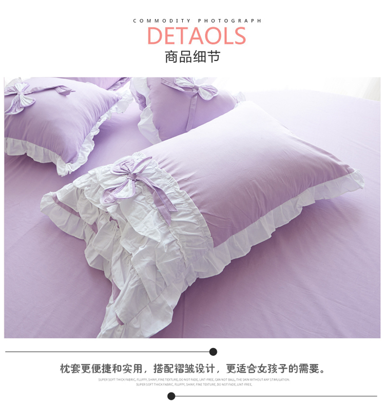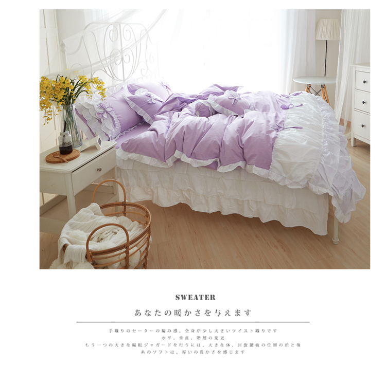 (总)淑女公社 韩版纯棉床裙款四件套-微微公主系列,灰色,玫红色,粉红色,蓝色,紫色