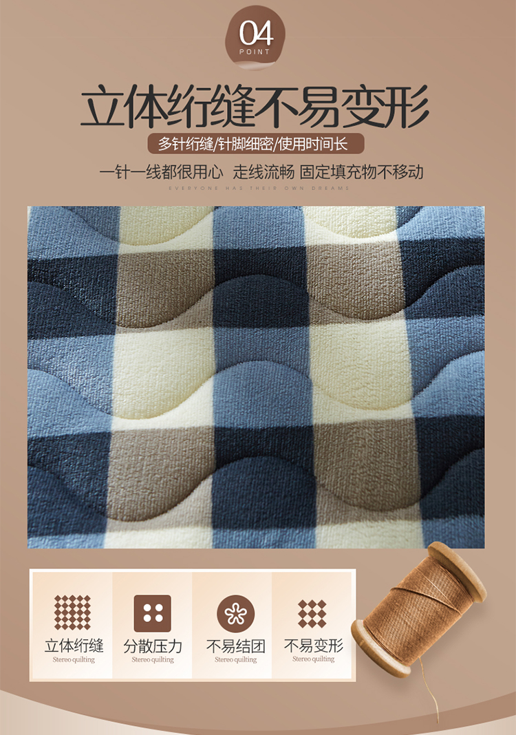 商品名称:欣罗兰 2022新款法莱绒床垫6cm 小方格