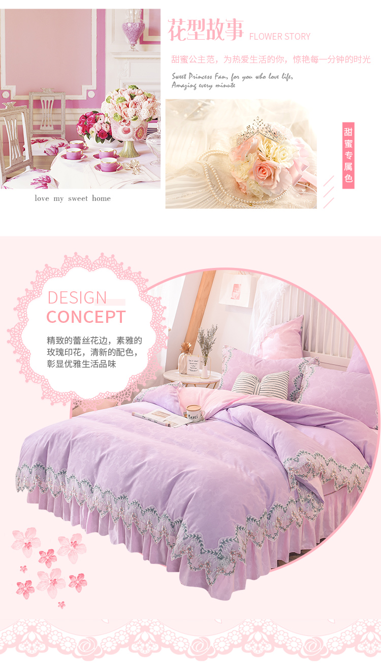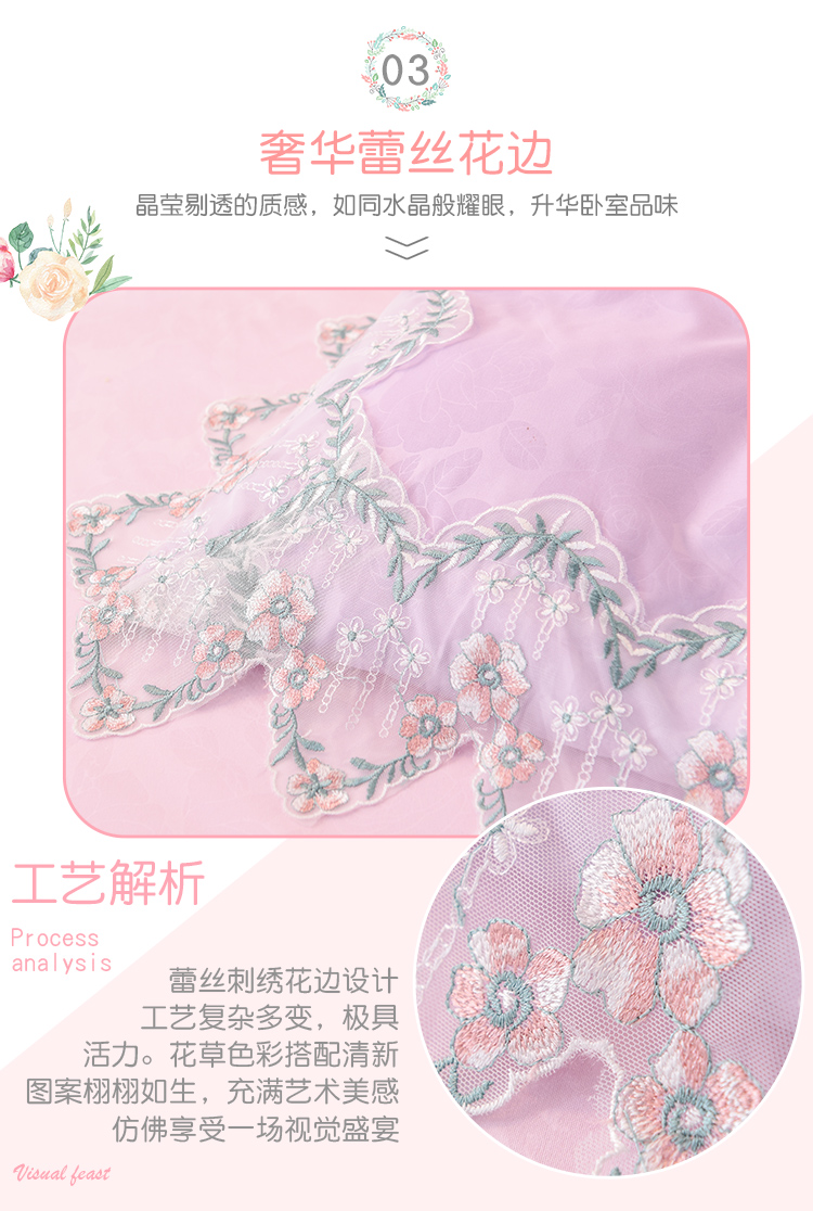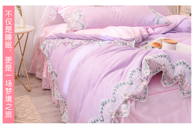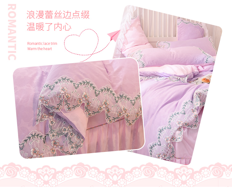商品名称:欧冠 2019新品玫瑰秘密系列四件套床裙款玫瑰秘密-紫粉