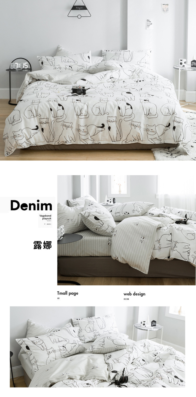 (总)慕尚家纺 2025新款全棉印花学生三件套套件,艾米熊,彩色爱心狗,铃兰花,美食派对,萌宠乐园,书生猫咪,桃心狗,汪可爱,旺旺,樱桃
