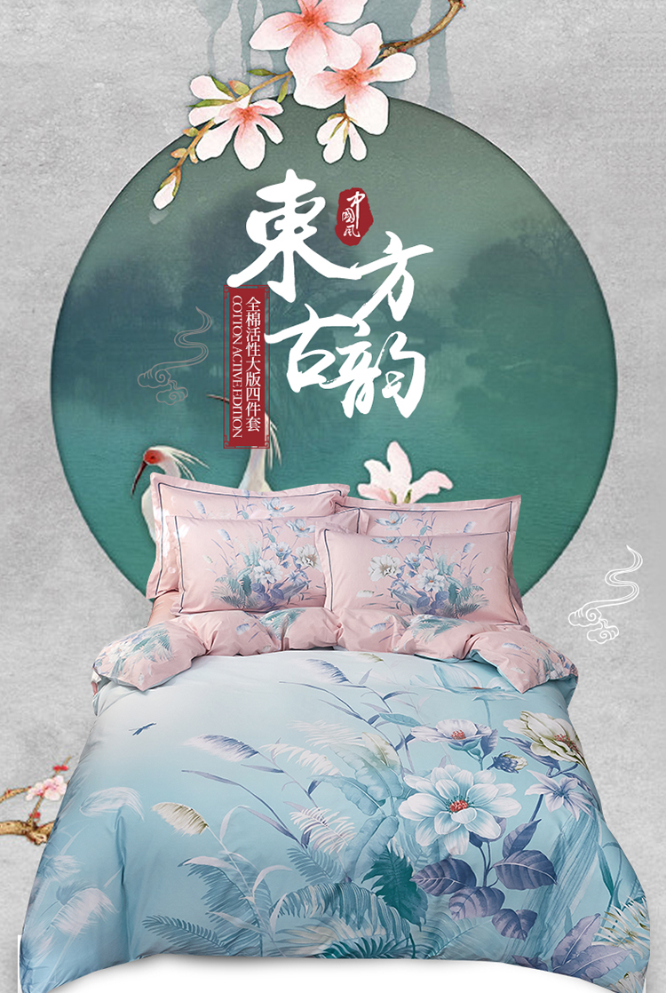 雲归梦家纺 2019新款13372全棉活性大版四件套 花满庭
