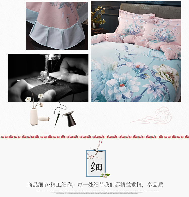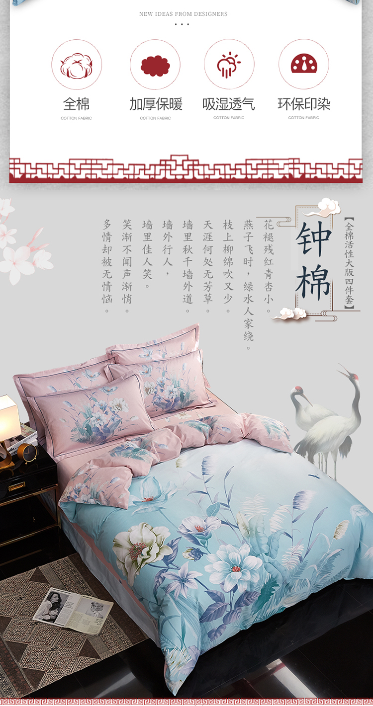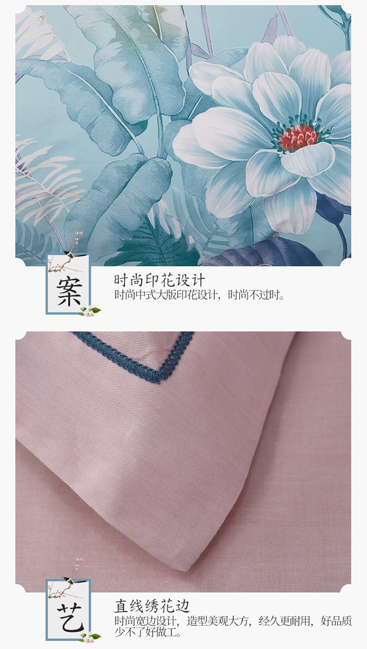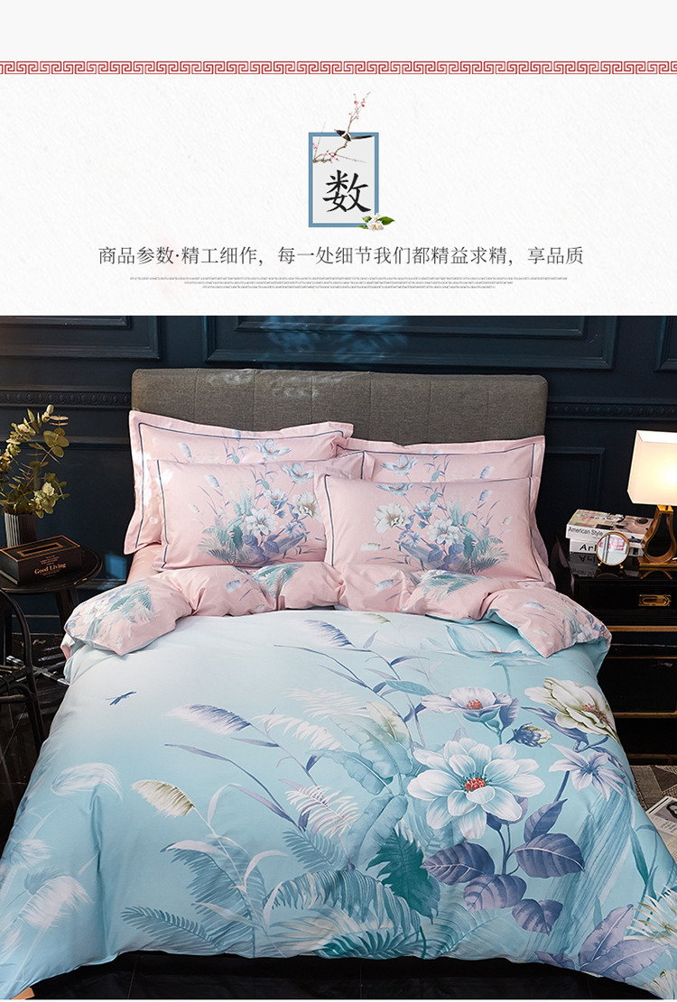 商品名称:雲归梦家纺 2019新款13372全棉活性大版四件套 花满庭