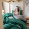 蓝巢家纺 全棉水洗棉学生季三件套 墨绿浅灰