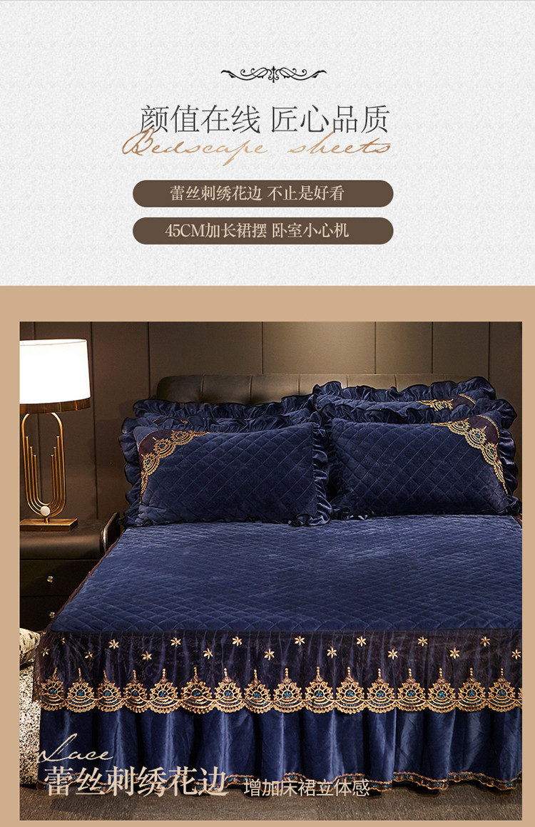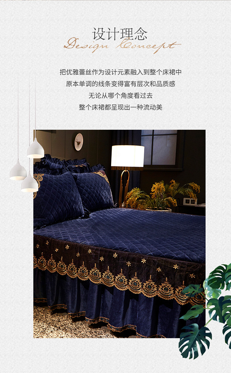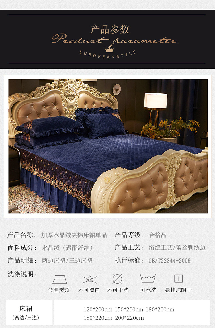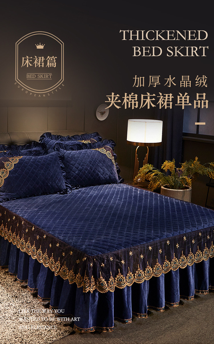 商品名称:宜凡家纺 2019新款繁华似锦系列单品床裙三边繁华似锦-宝蓝