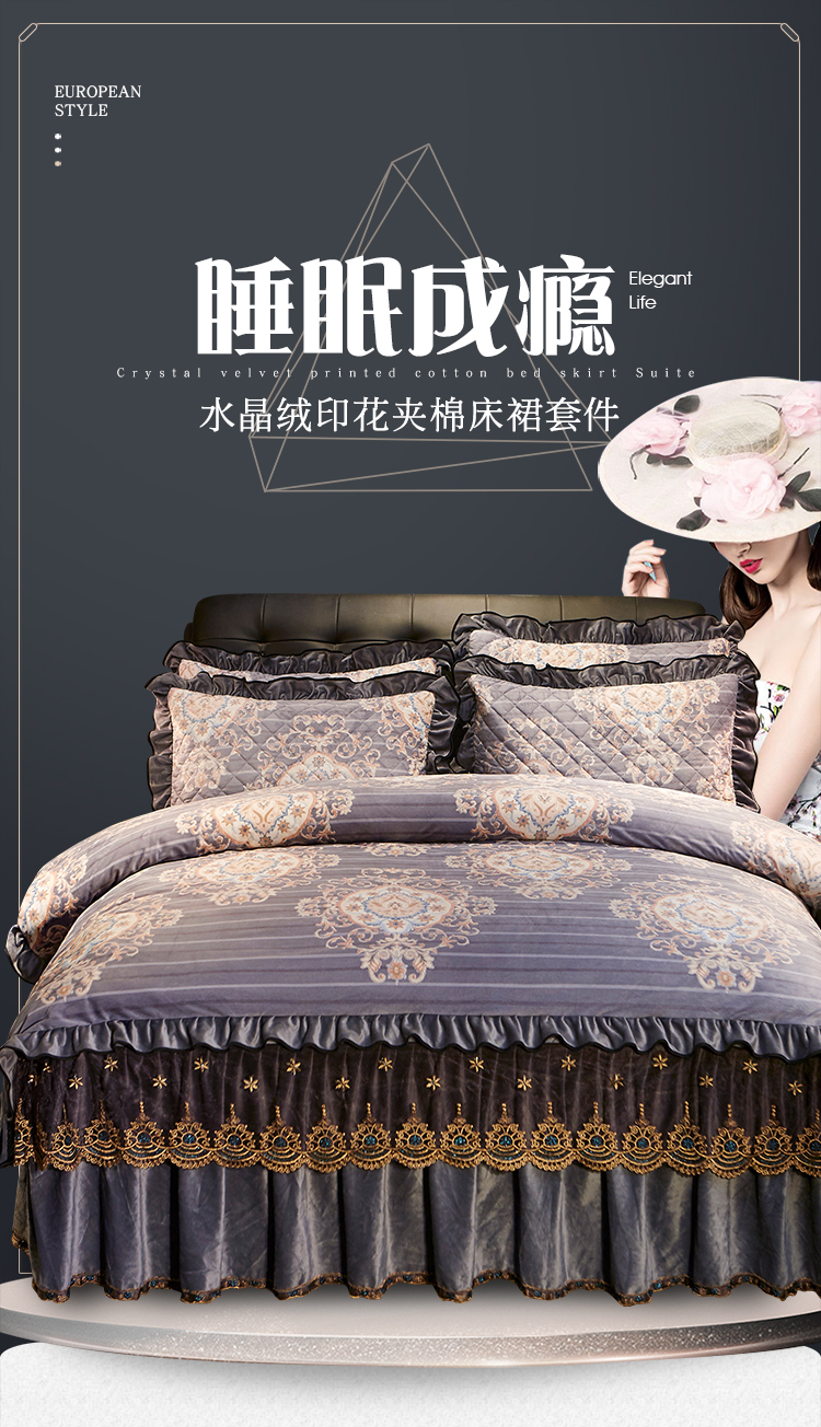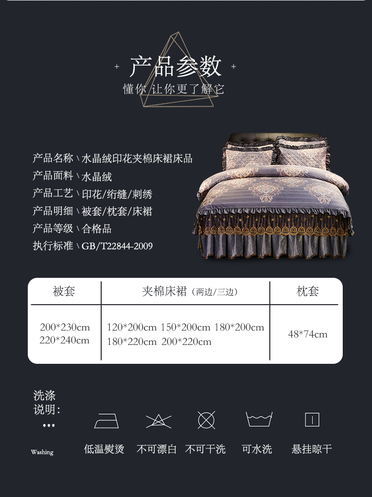 商品名称:宜凡家纺 2019新款水晶绒印花系列床裙四件套 万顷琉璃
