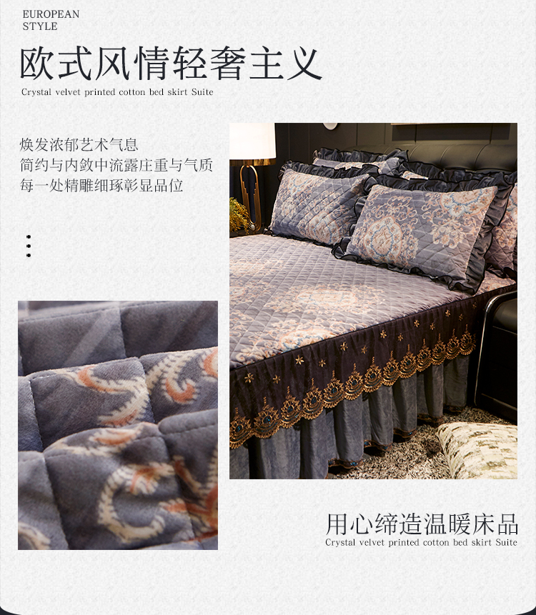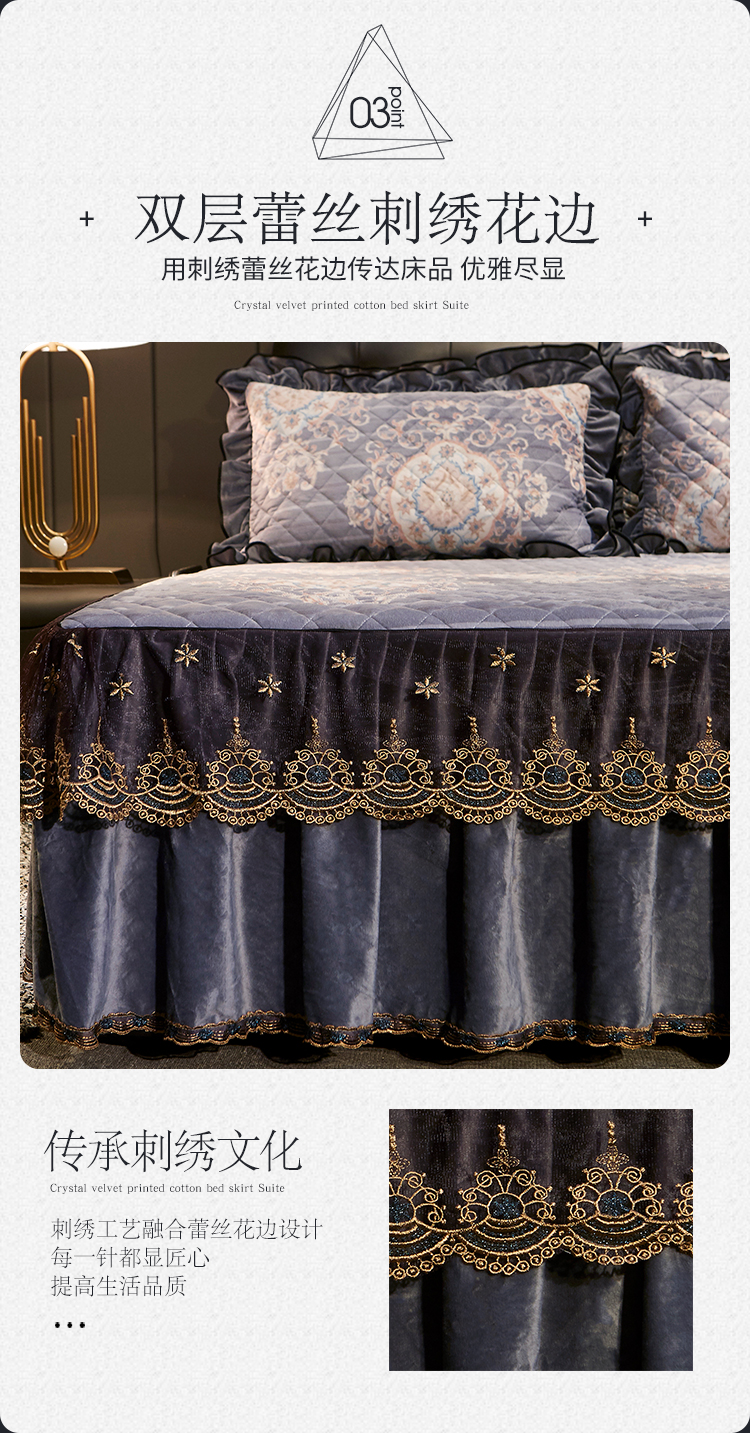 宜凡家纺 2019新款水晶绒印花系列床裙四件套 万顷琉璃