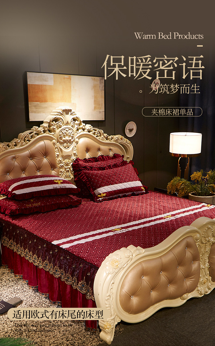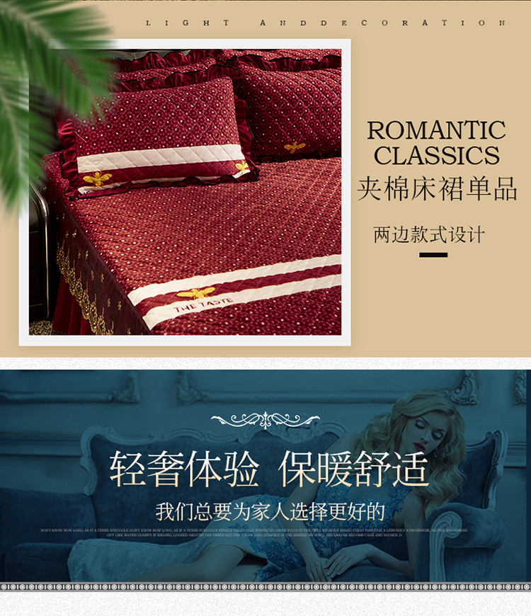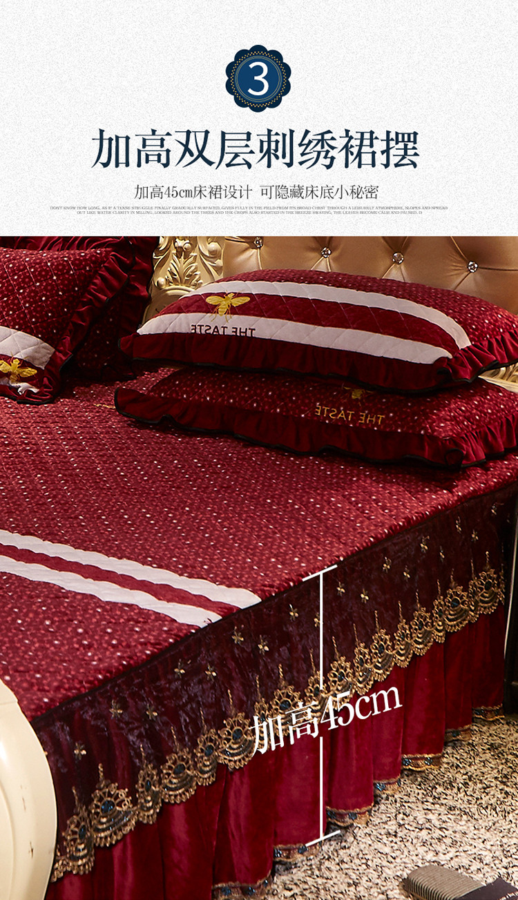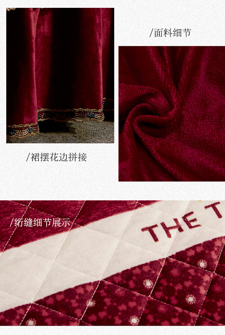 (总)宜凡家纺 2025新款婴儿绒压花全夹棉床裙四件套,韵雅-中国红,韵雅-黑天鹅