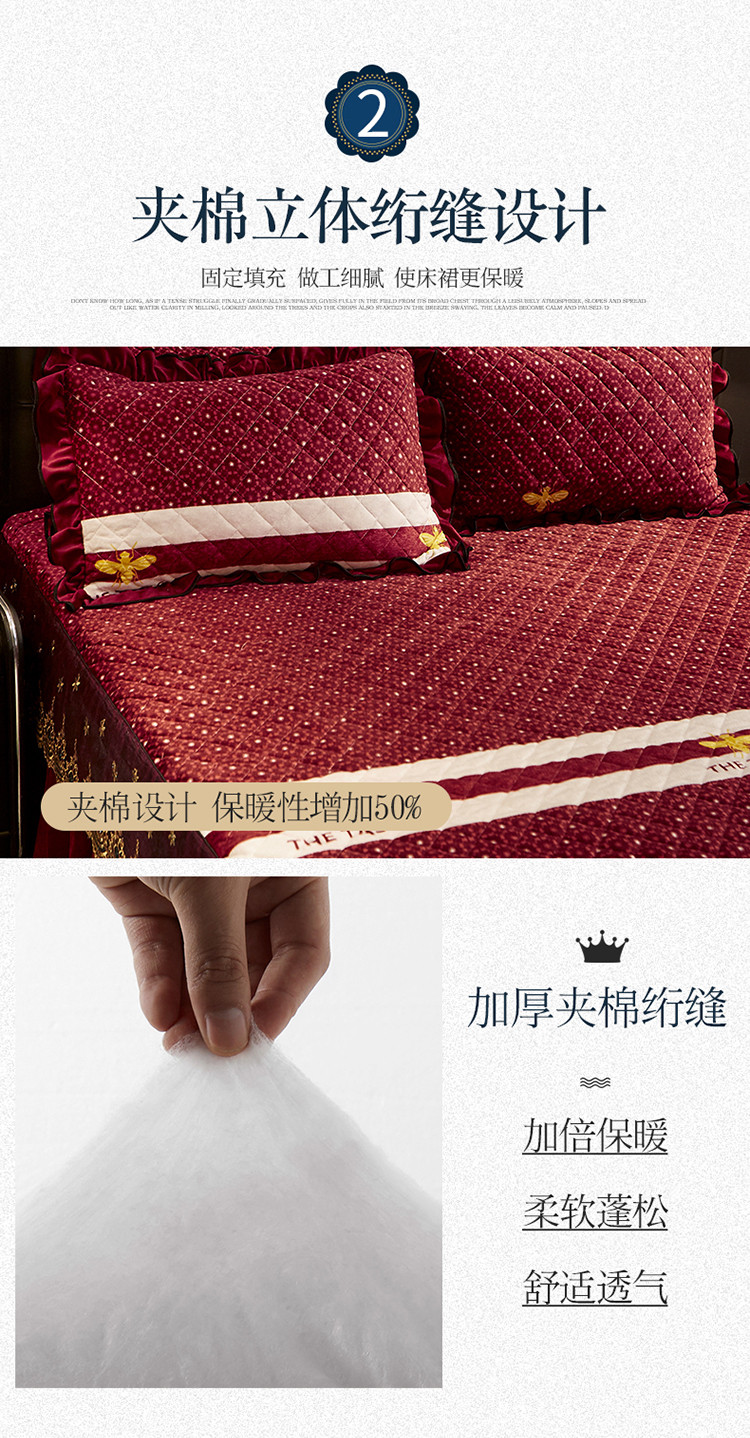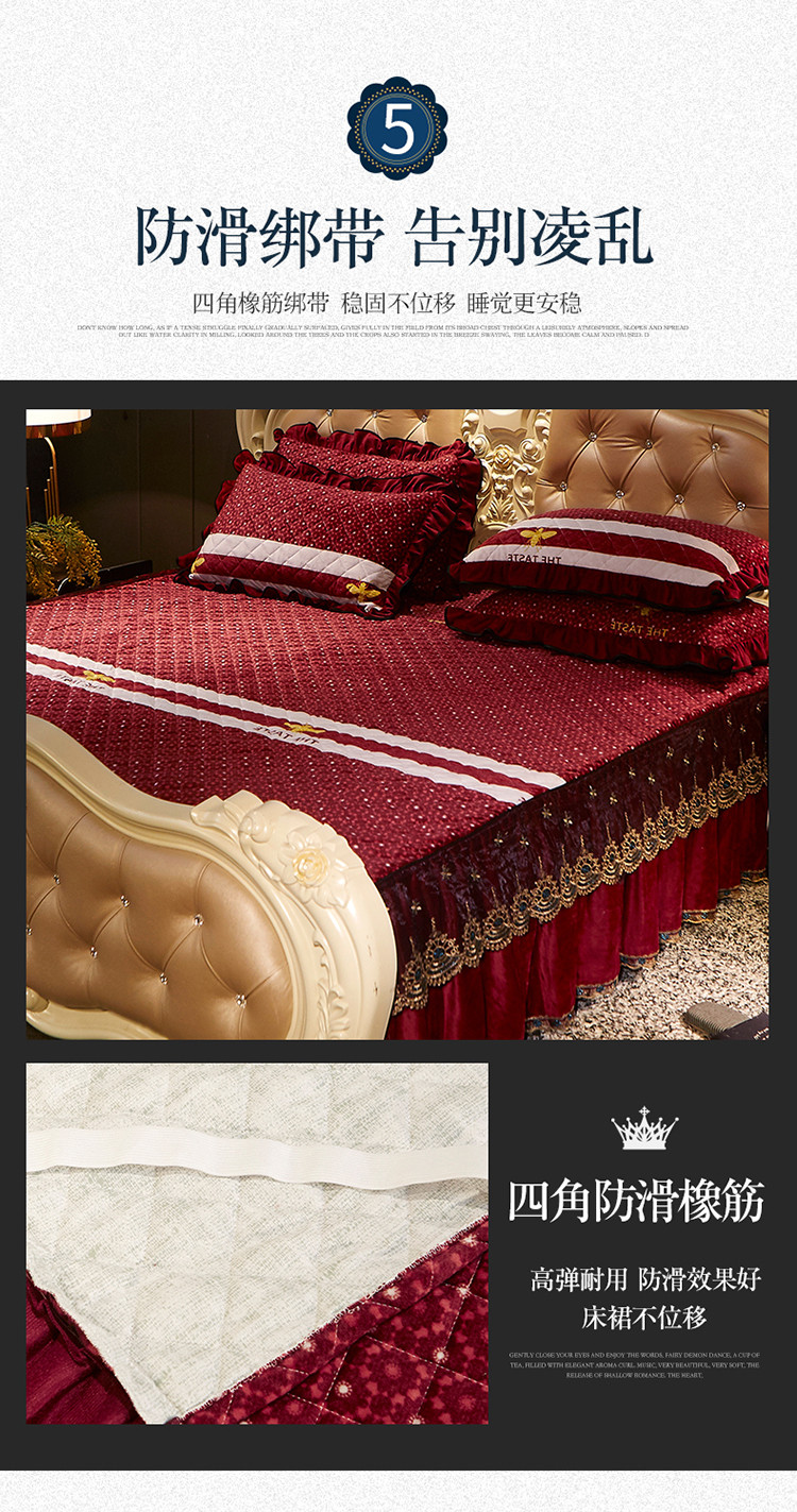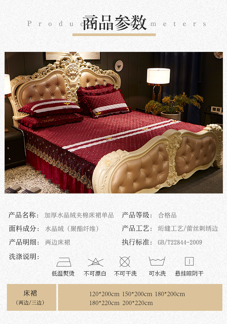 (总)宜凡家纺 2025新款婴儿绒压花全夹棉床裙四件套,韵雅-中国红,韵雅-黑天鹅