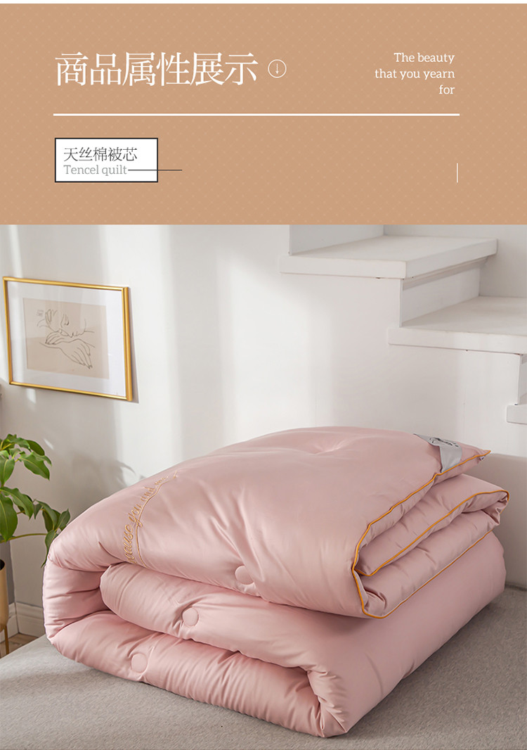 (总)头等舱 2025新款天棉缎大提花55莱赛尔大豆7A抗菌秋冬被(模特图),卡布丽娜,慕斯,配包装