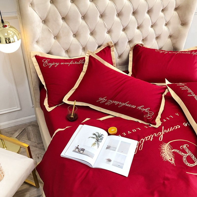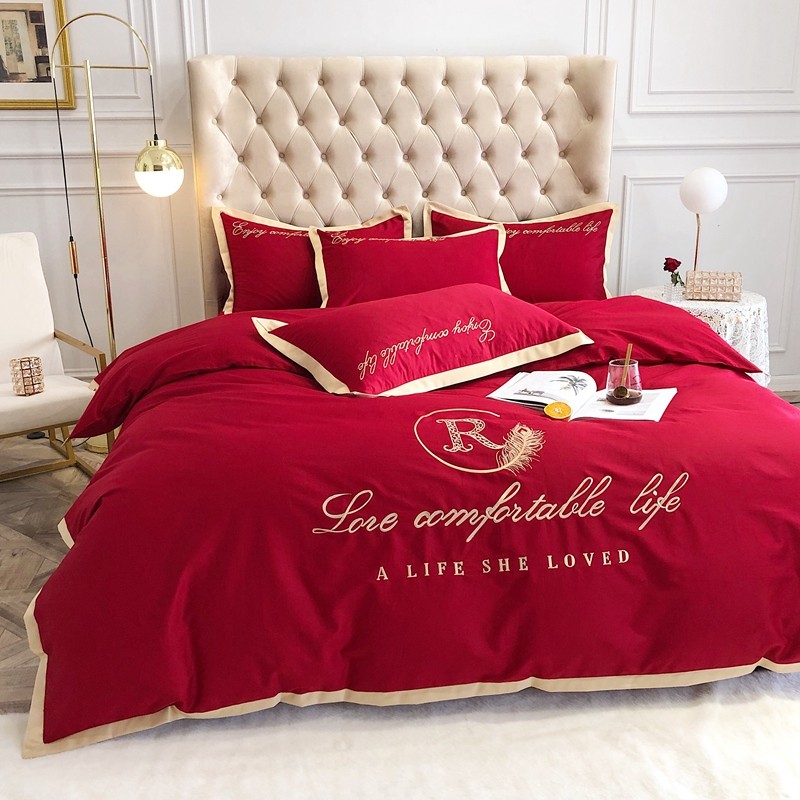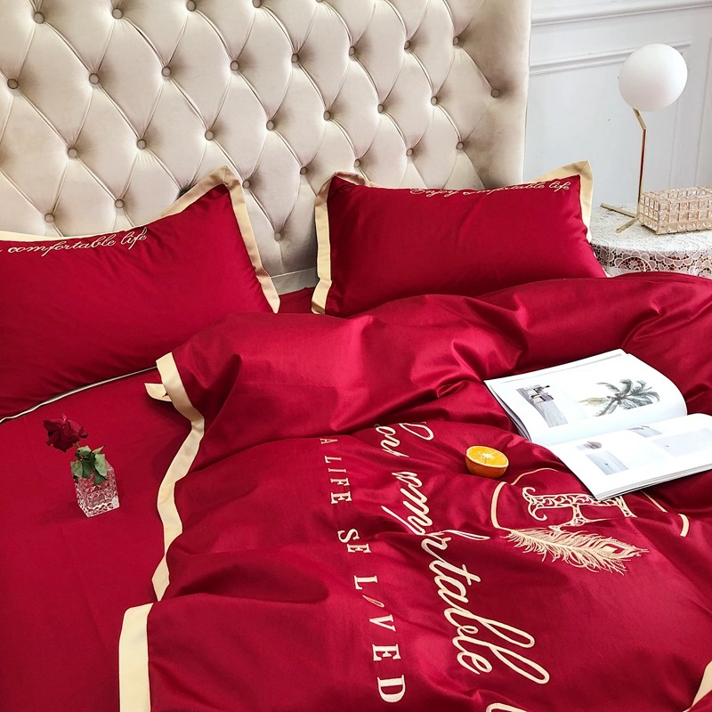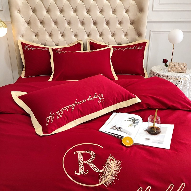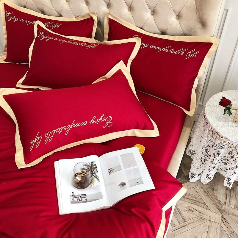 馨蕊家居 2021新款60长绒棉四件套简爱系列 简爱-温莎红