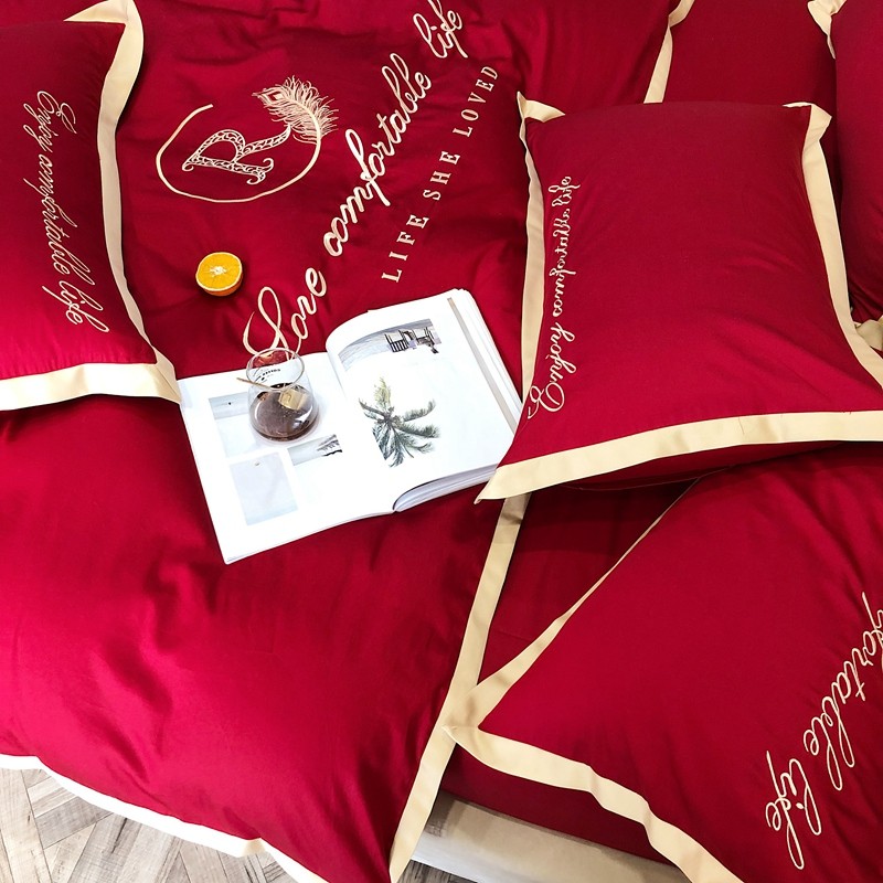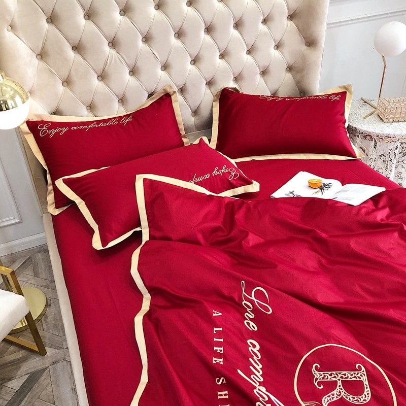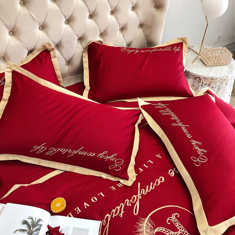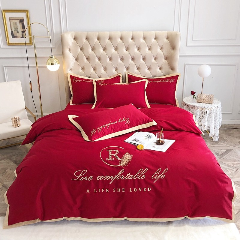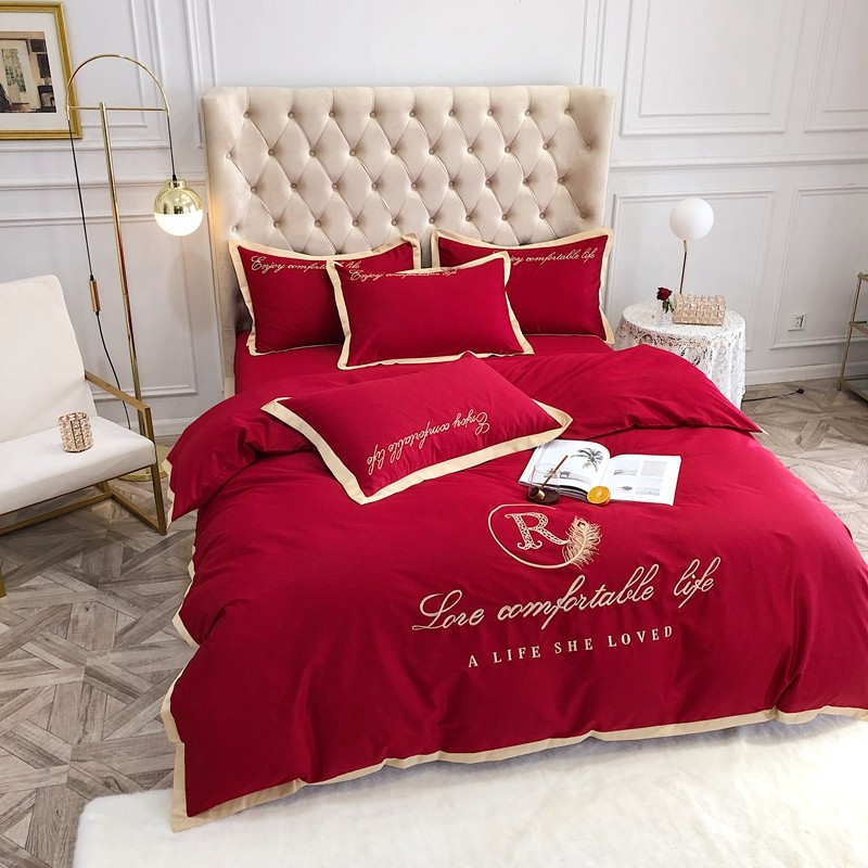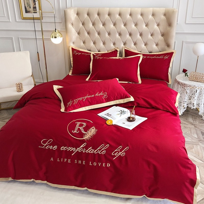 馨蕊家居 2021新款60长绒棉四件套简爱系列 简爱-温莎红