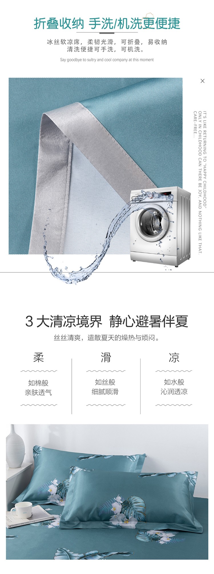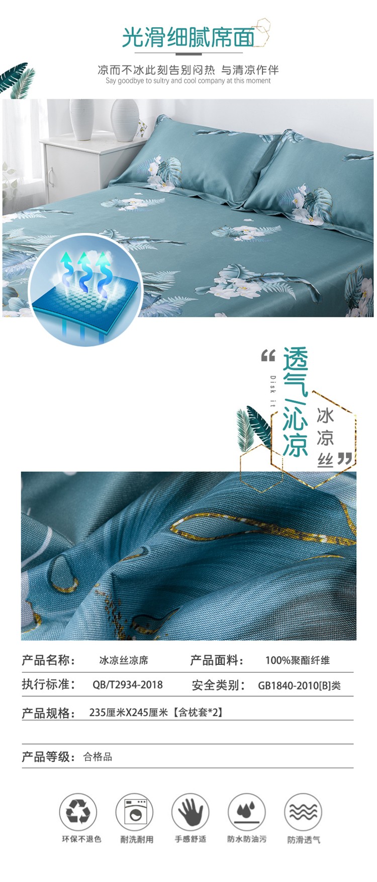 商品名称:小芽 2024新款冰凉丝印花凉席小清新系列 夏叶阴浓