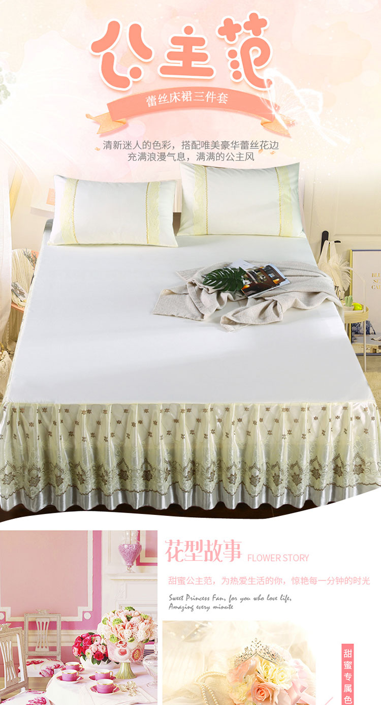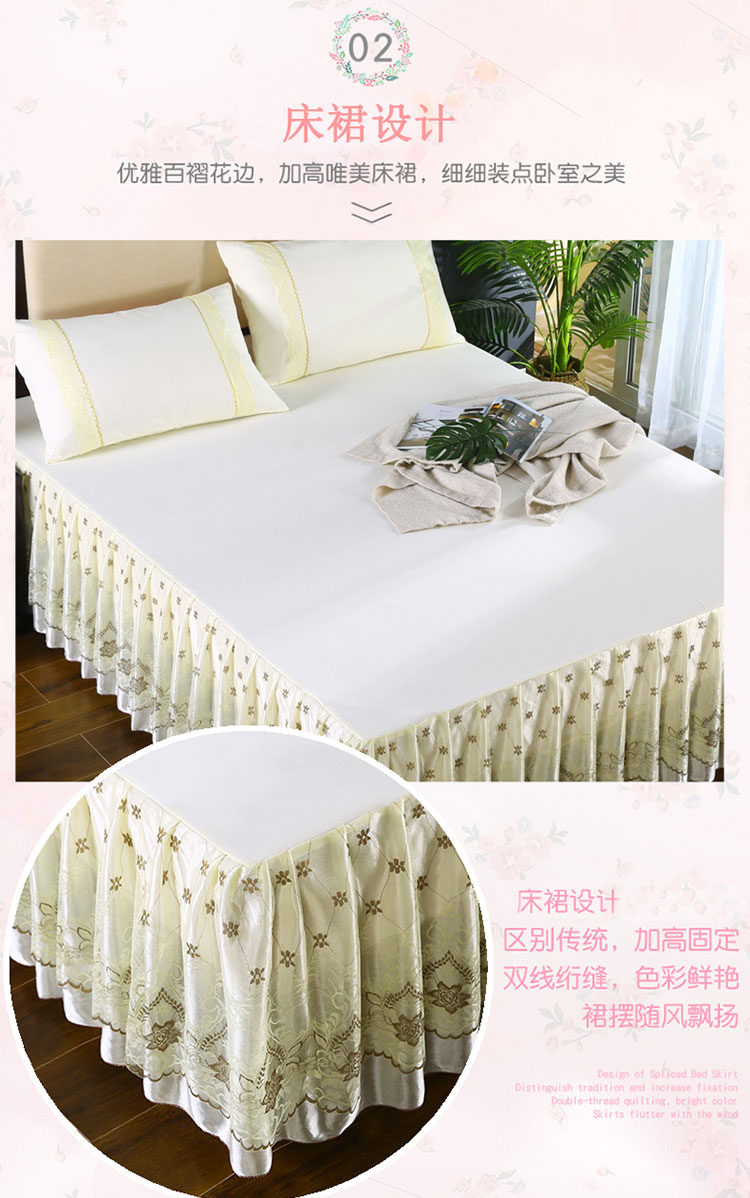 情恒 2020新款蕾丝床裙 欧典之约(米黄)