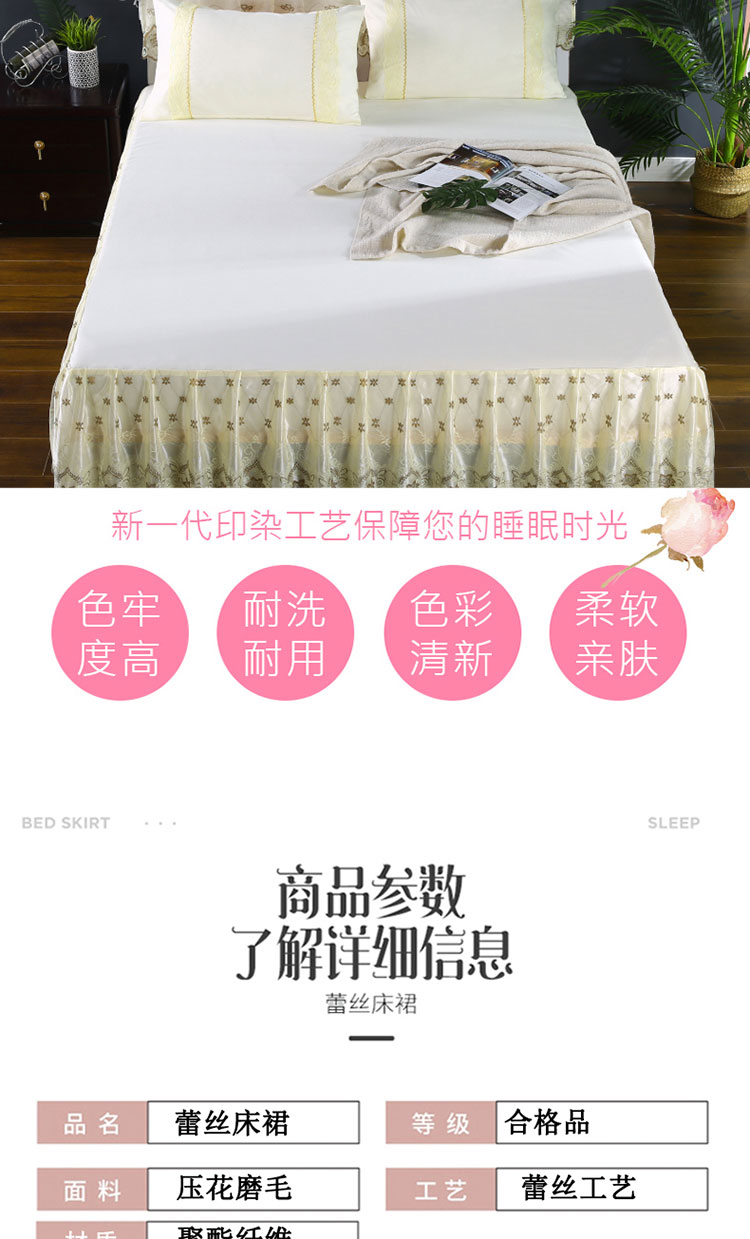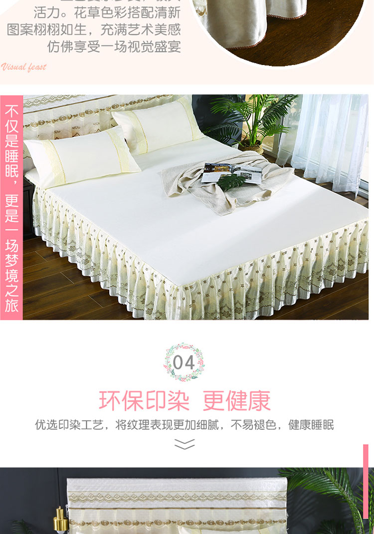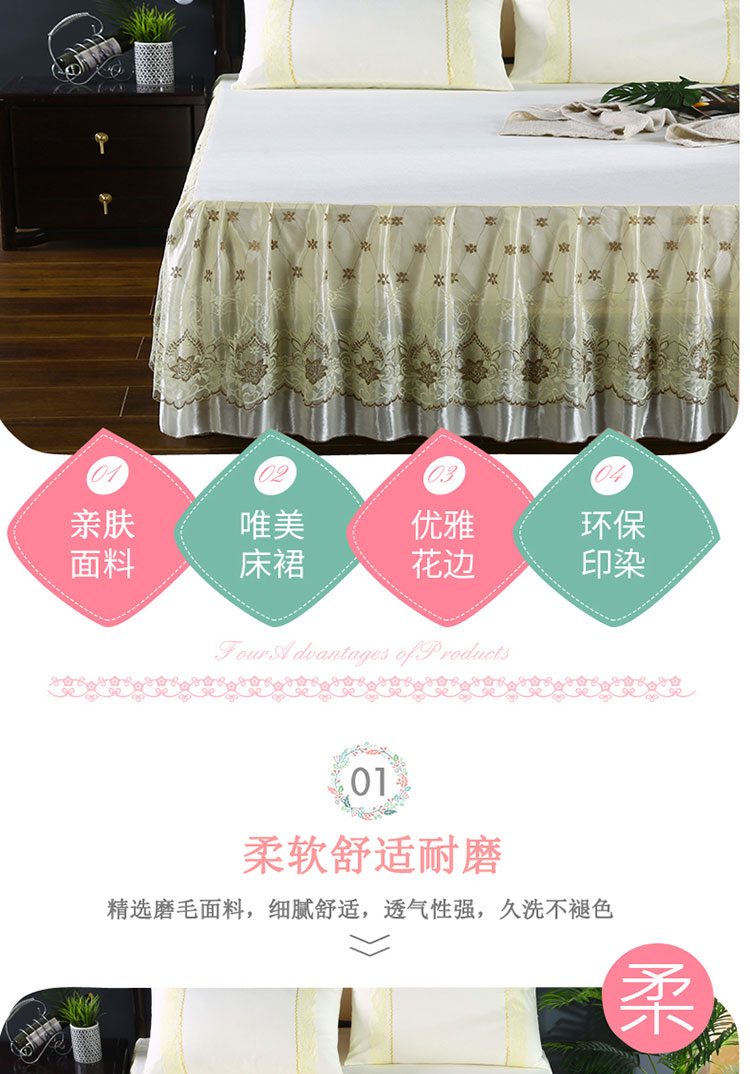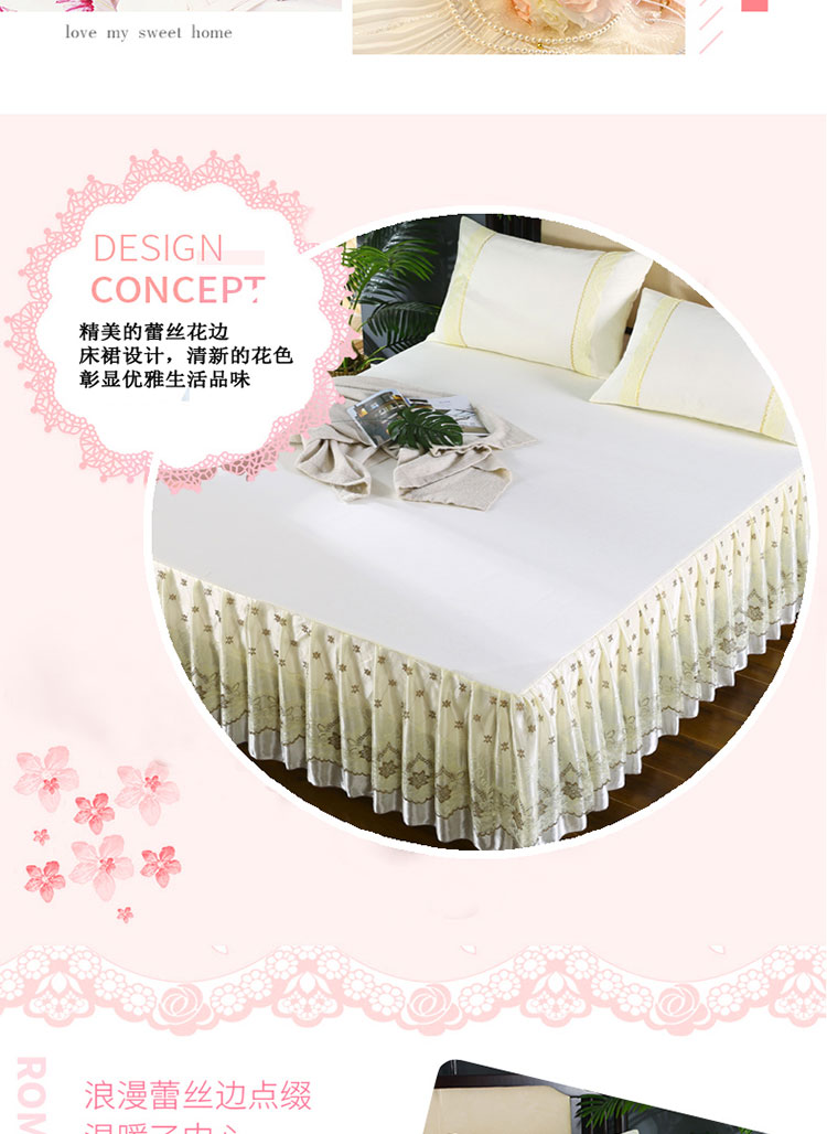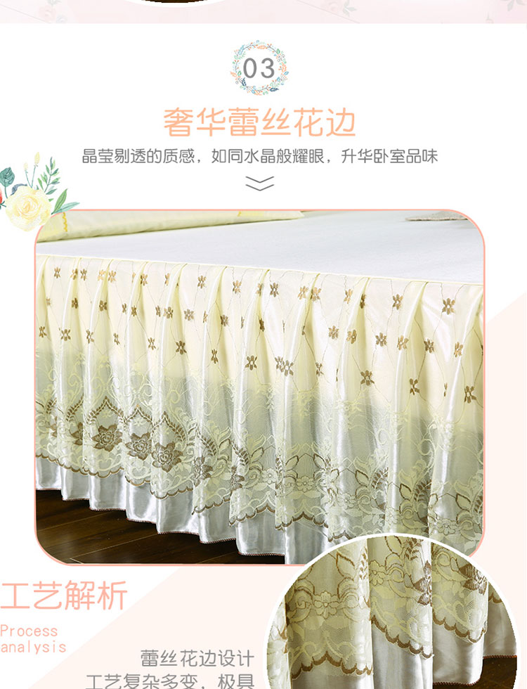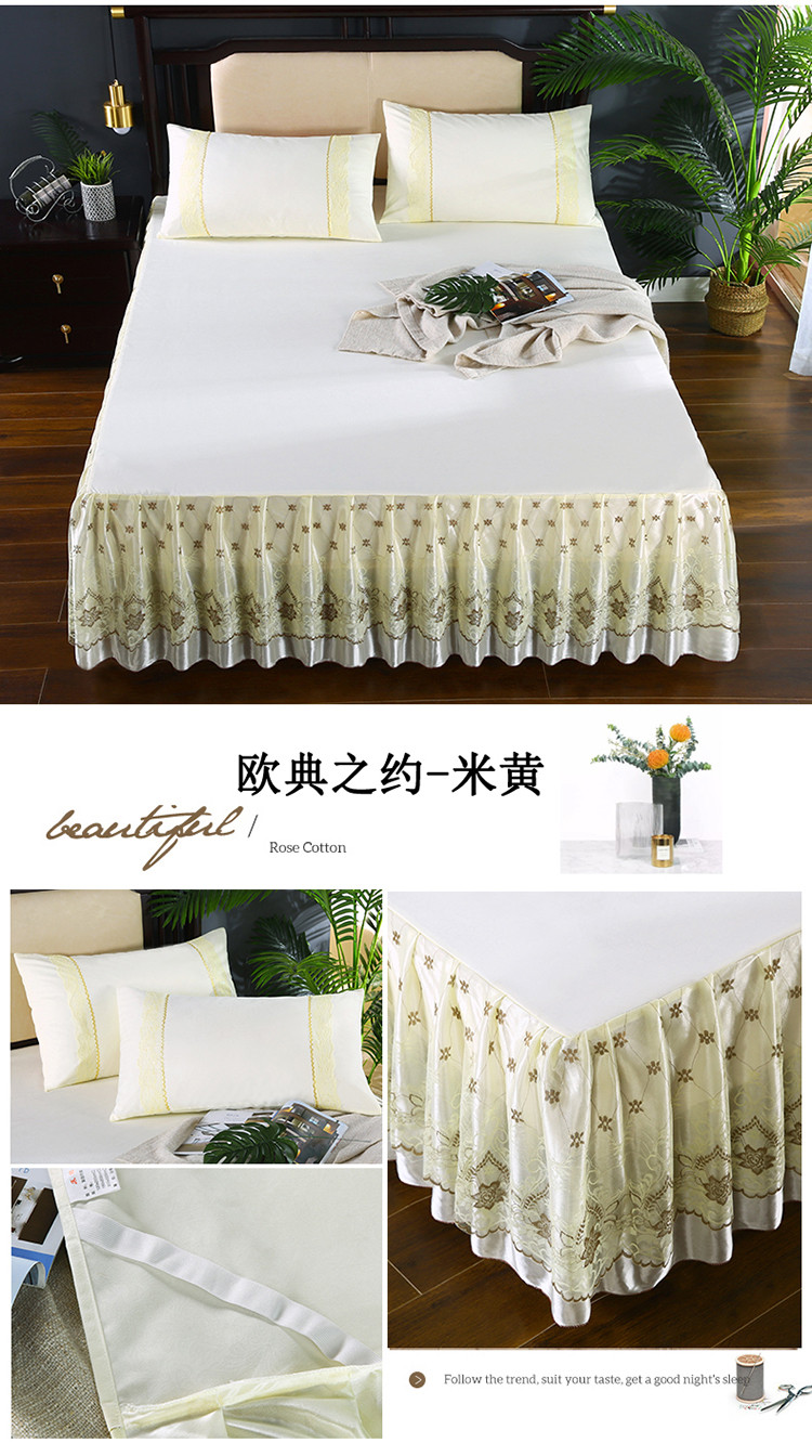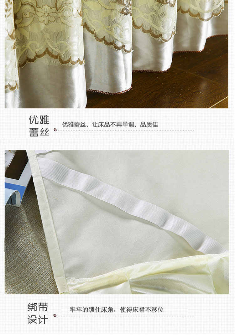 • 91家纺网 家纺一手货源 找家纺 情恒 2020新款蕾丝床裙 欧典之约(米黄)