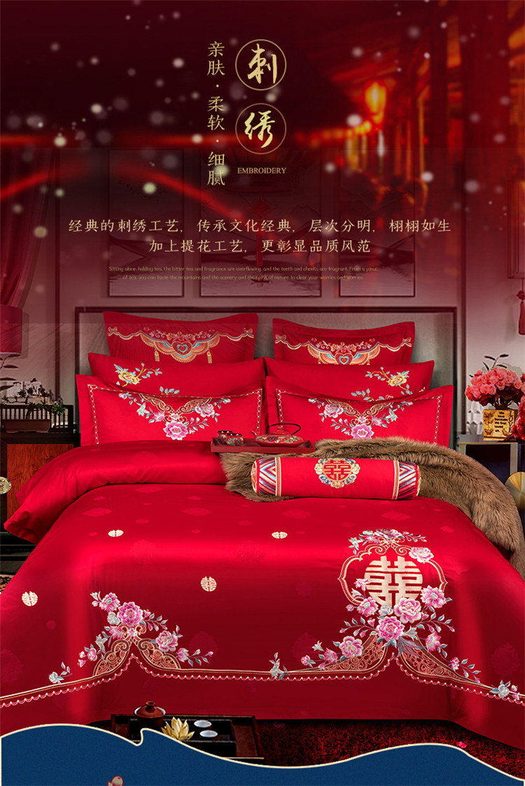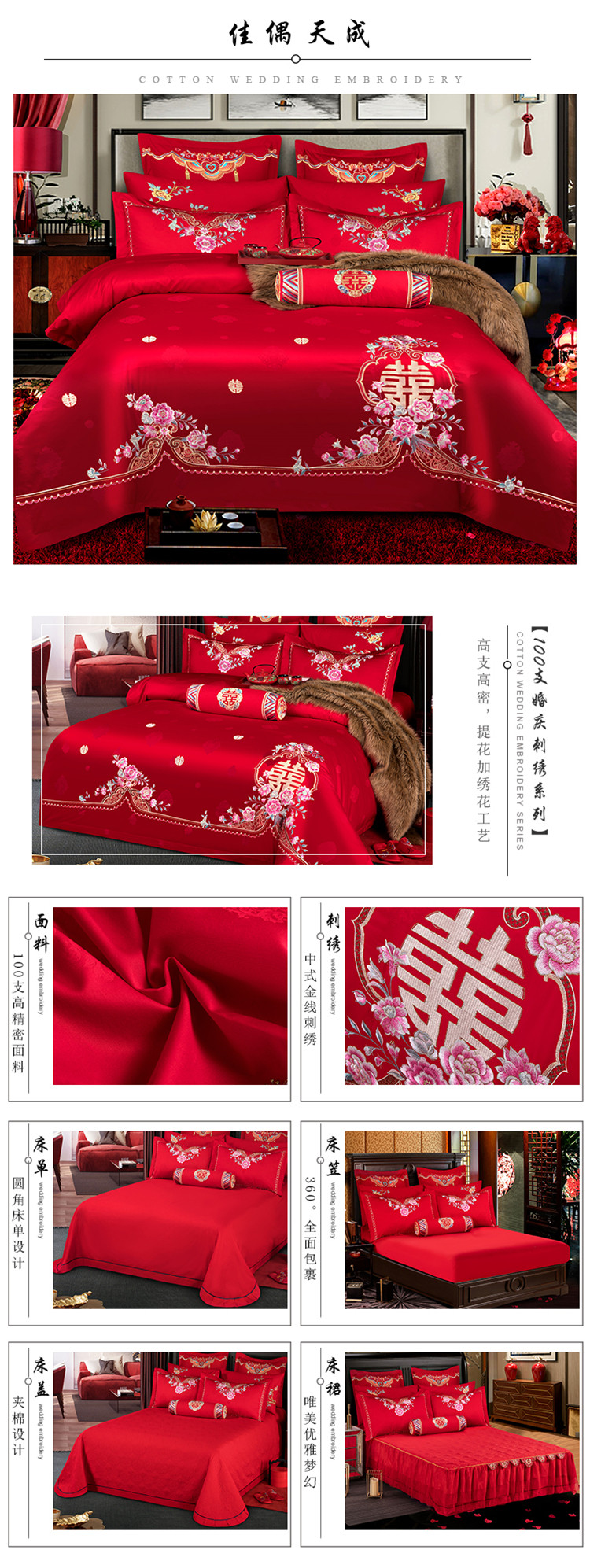 当前位置: 91家纺网 > 商品网购 > 床品套件 > 四件套 > 婚庆四件套 > 2025新款120S全棉刺绣贡缎提花婚庆四件套多件套佳偶天成