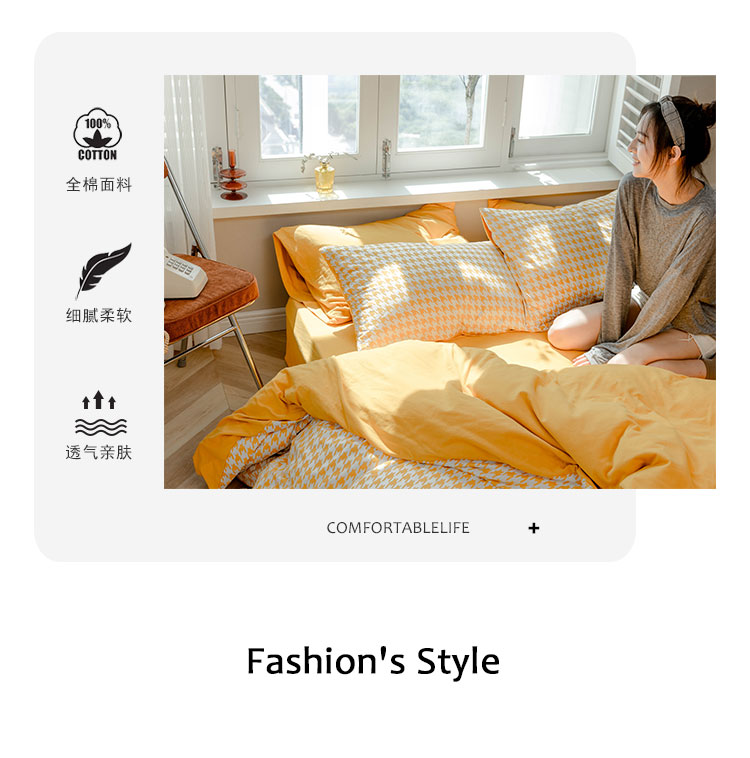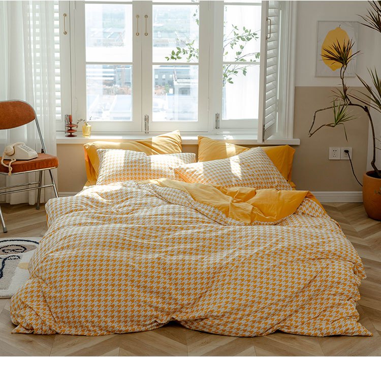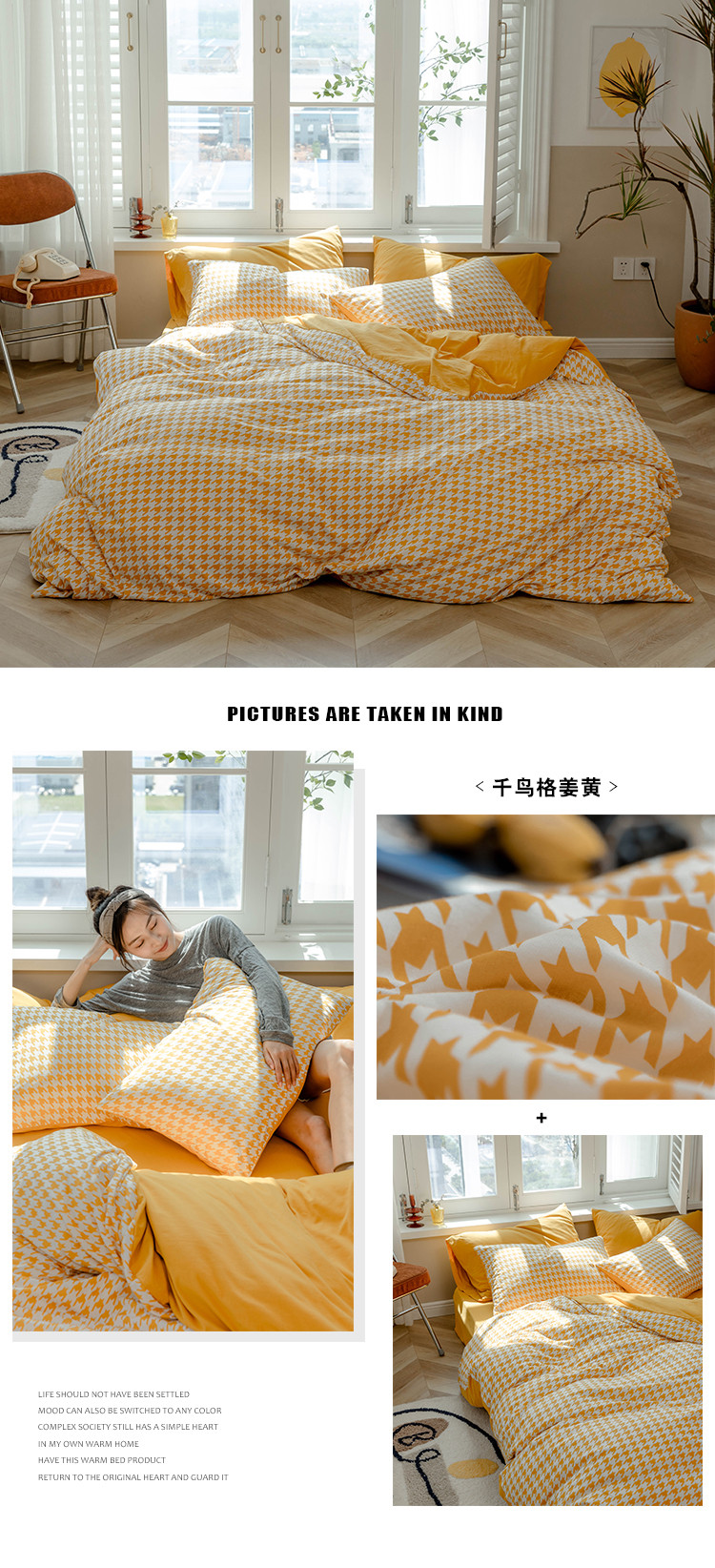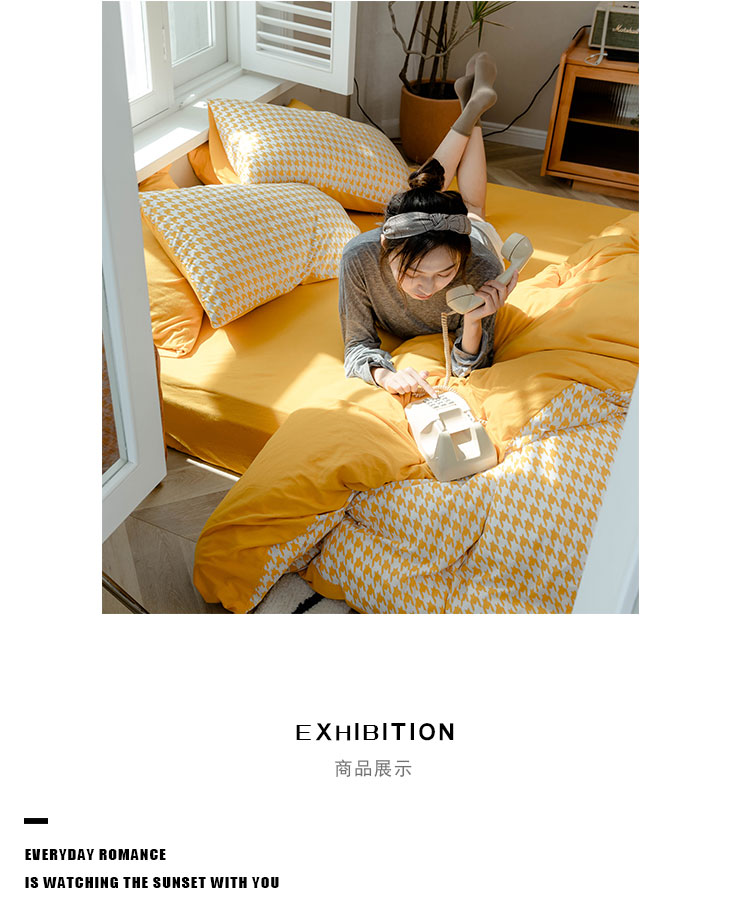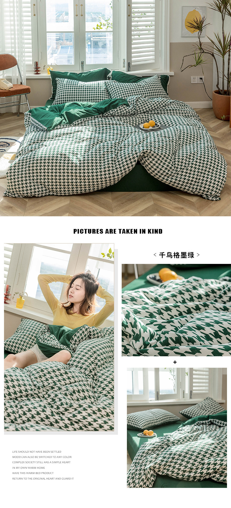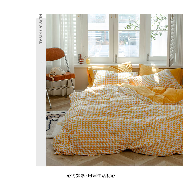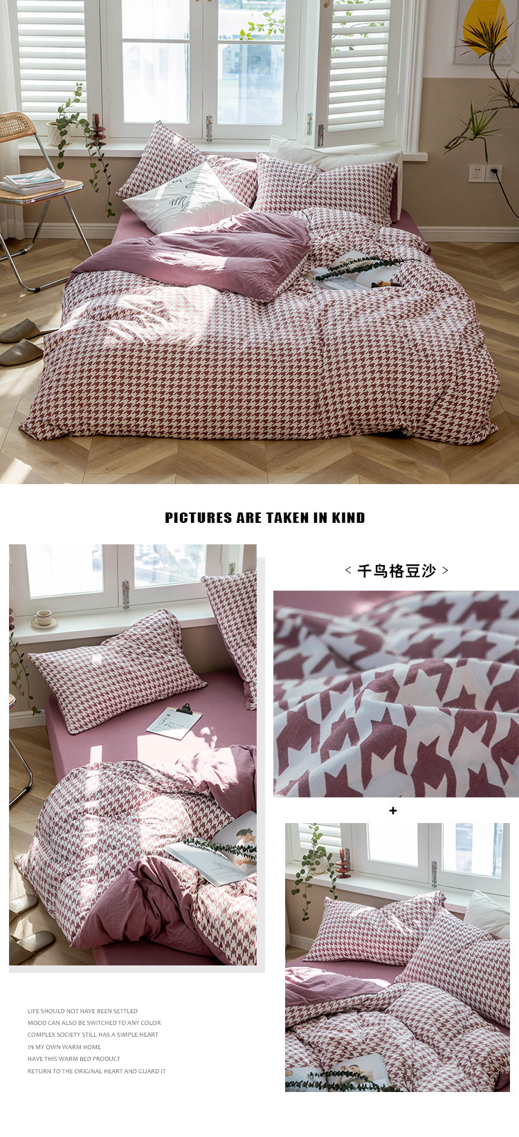 (总)华超针织 2021新款天竺棉千鸟格四件套,千鸟格豆沙,千鸟格海蓝,千鸟格姜黄,千鸟格墨绿,千鸟格藕色,千鸟格炭黑