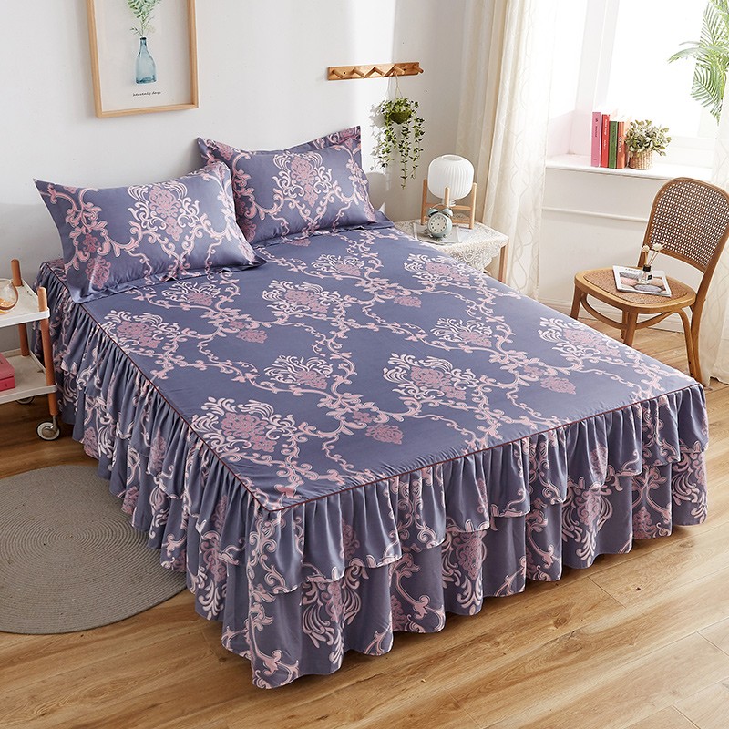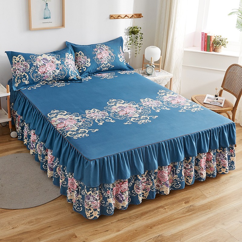 (总)代芙 2023新款加厚磨毛双边床裙单品三件套