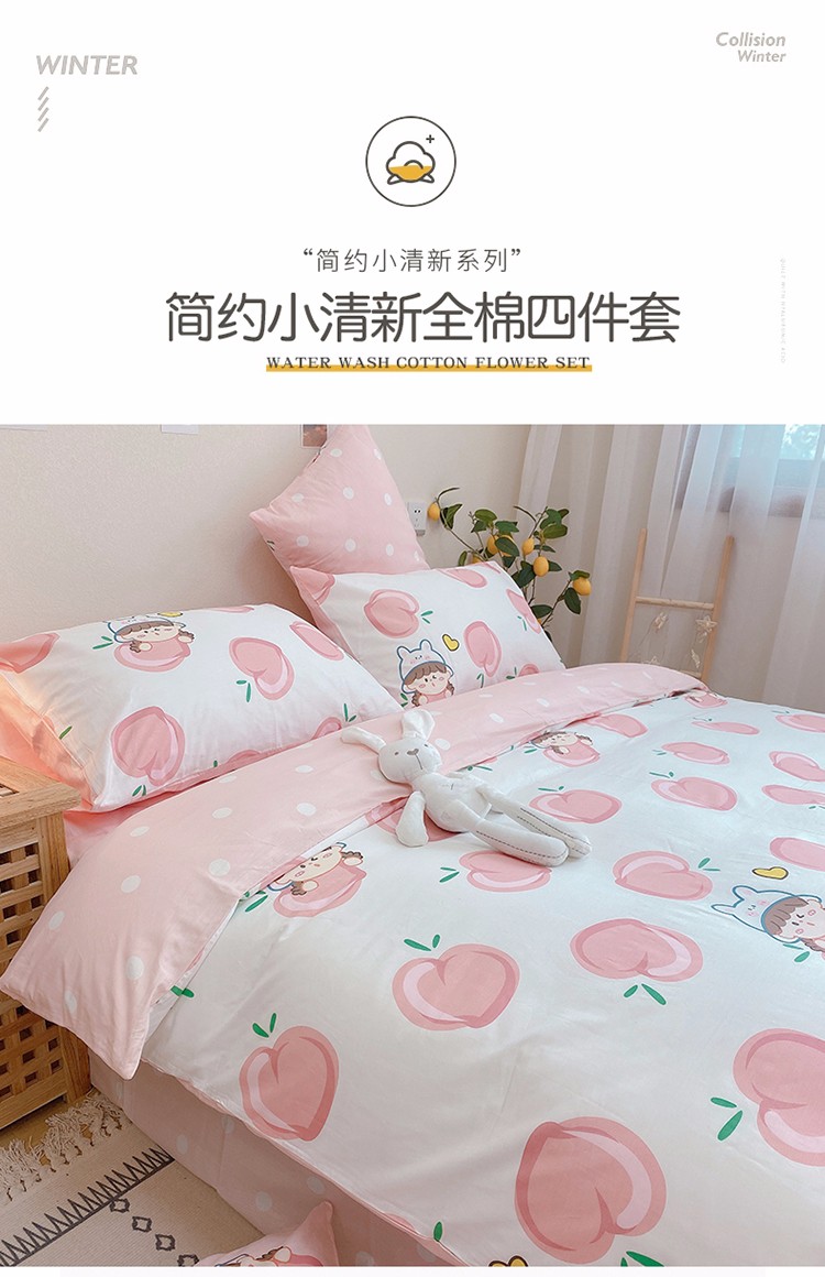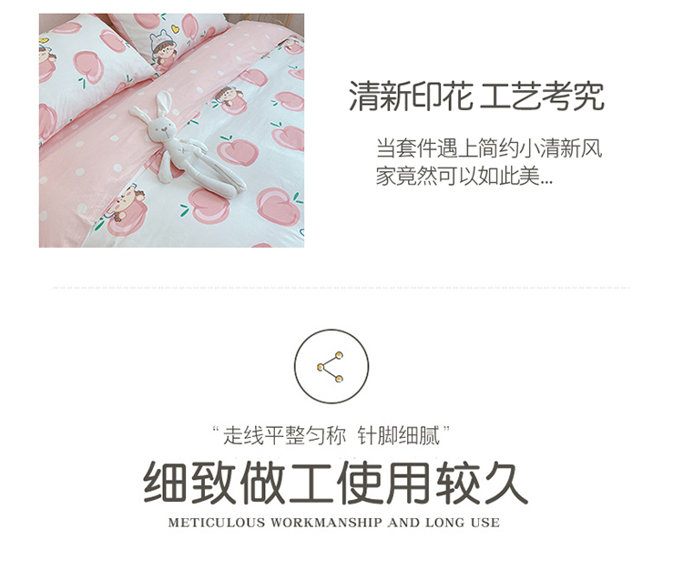 商品名称:沐棉家居 2020新款全棉13370四件套 蜜桃女孩-白