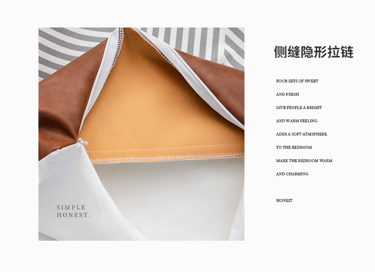 商品名称:美茉家居 2020新款皮革帆布双拼系列抱枕 十字长枕